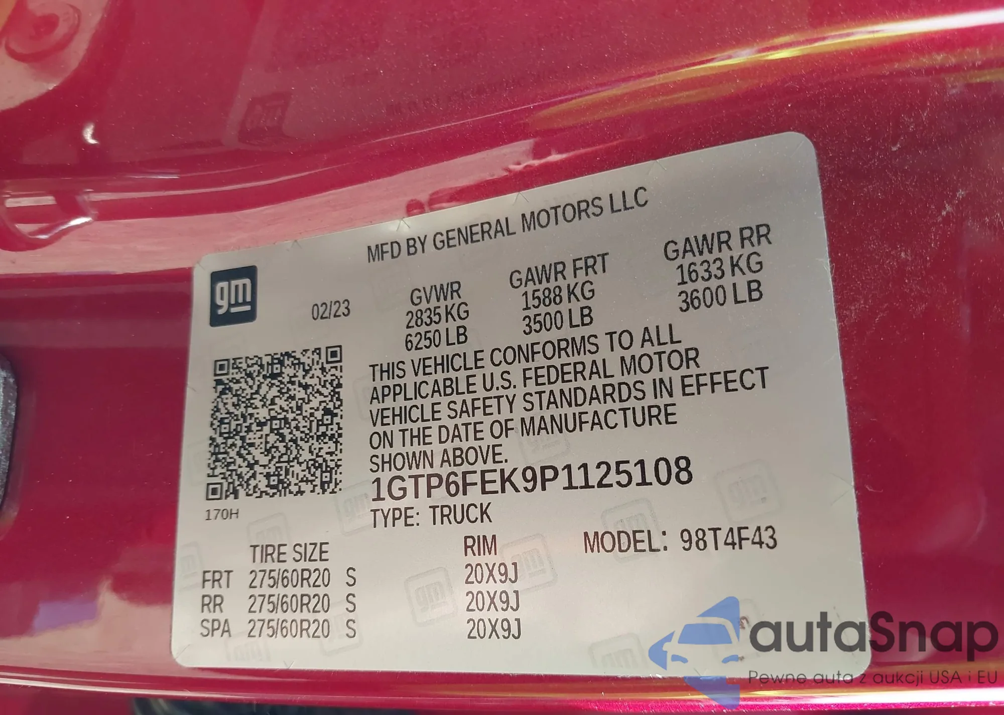 LOT: 43251132 VIN: 1GTR1UEH1FZ251771