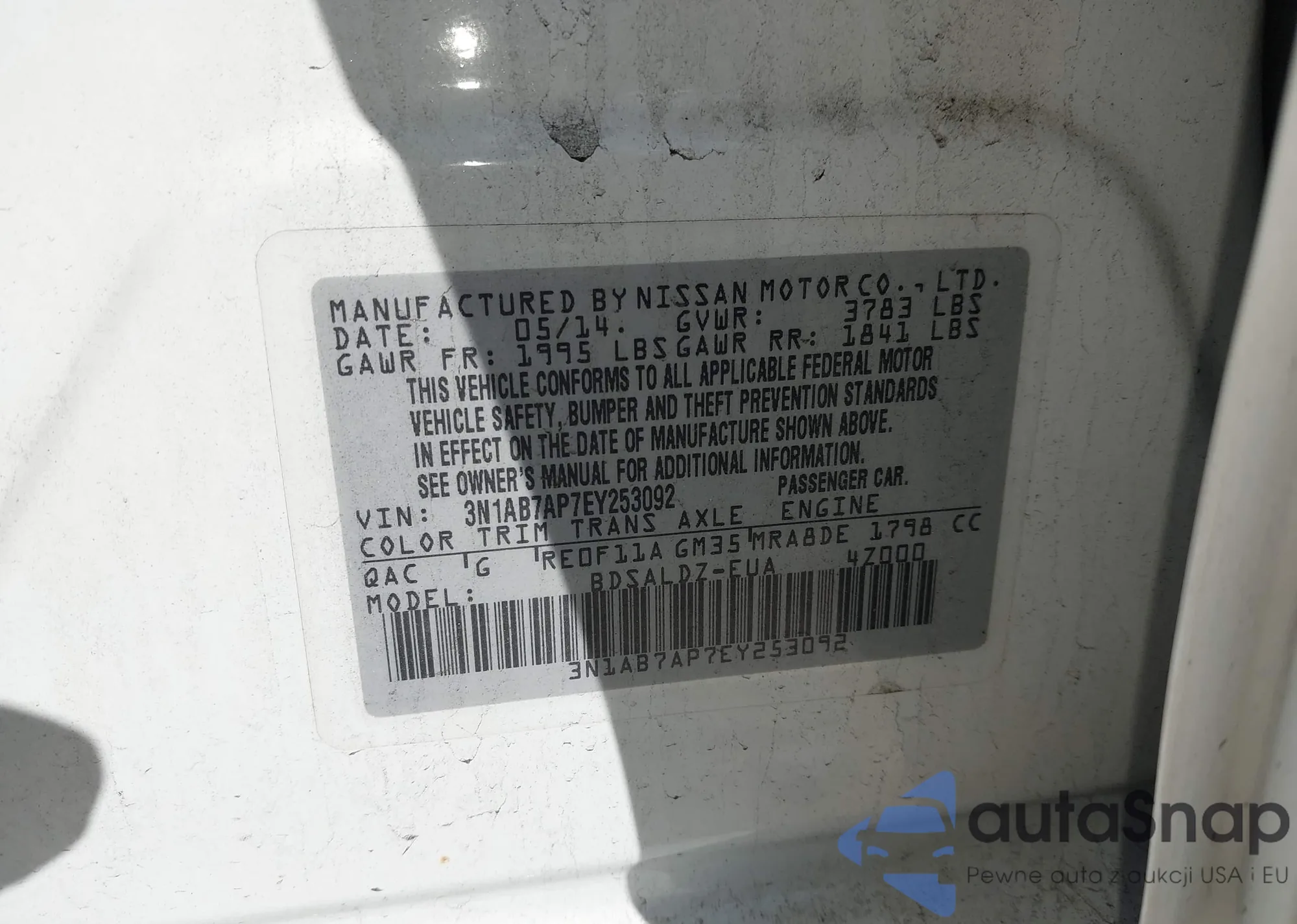 • VIN 3N1AB7AP7EY253092