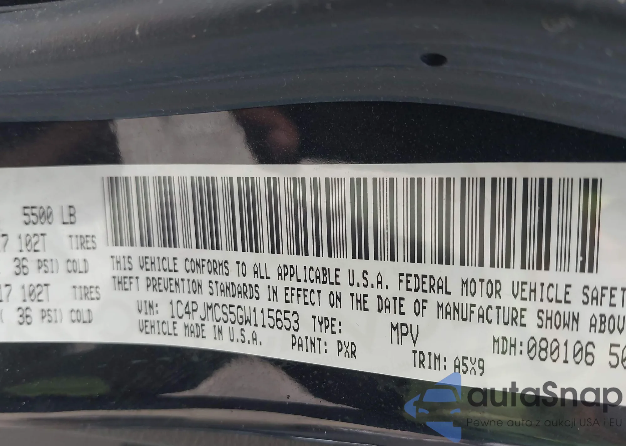 • VIN 1C4PJMCS5GW115653