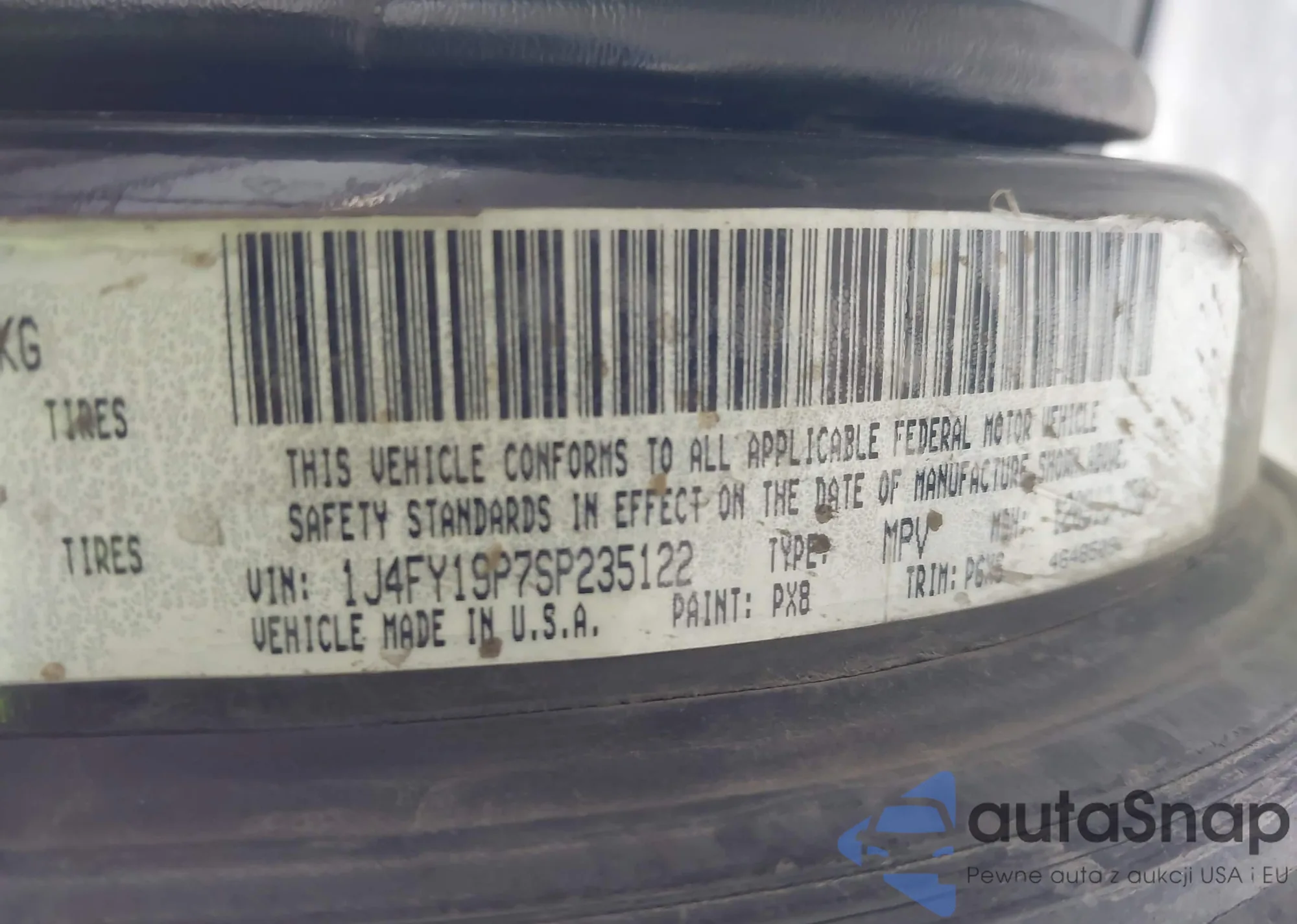 LOT: 43252030 VIN: 1J4FY19P7SP235122