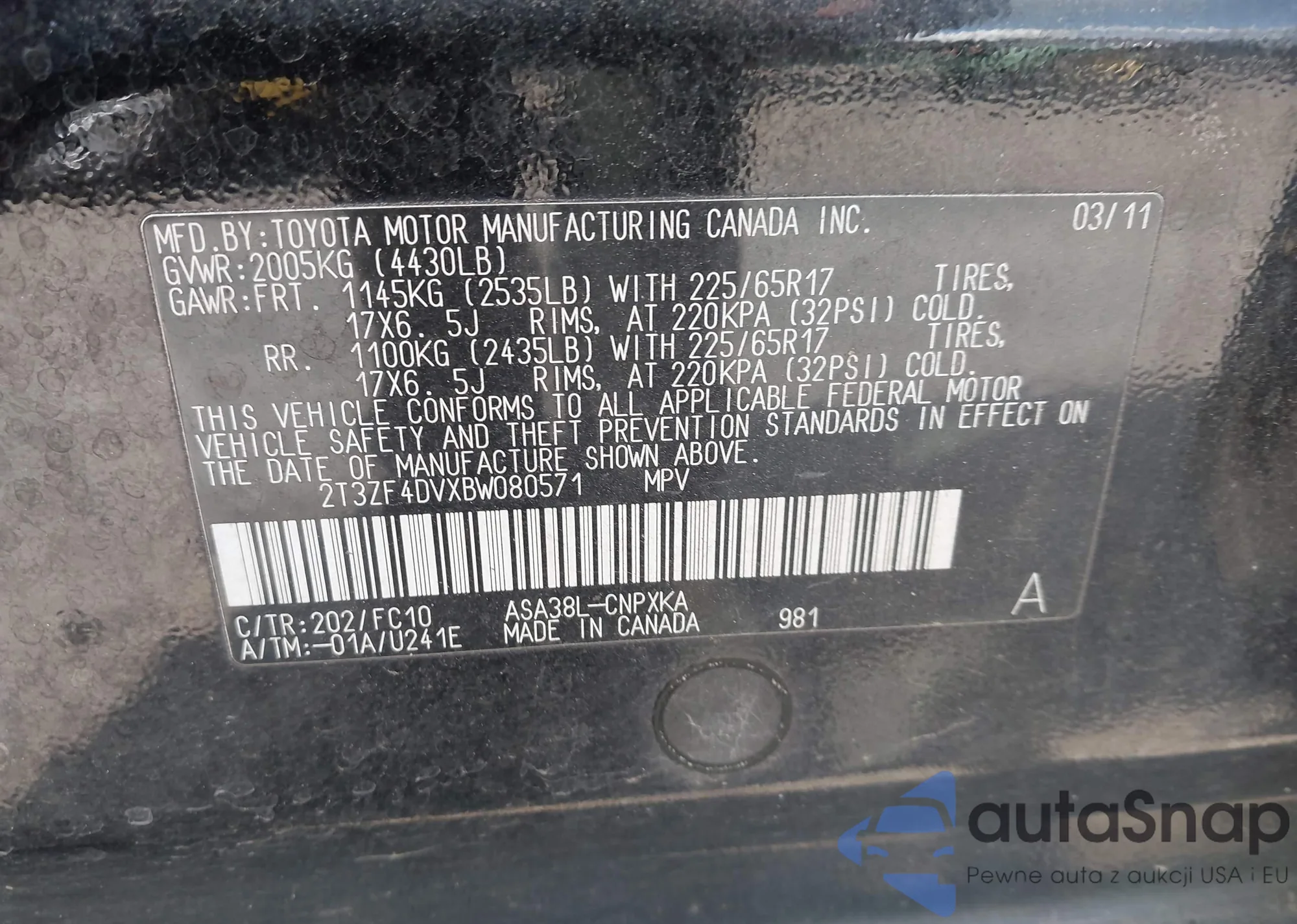 • VIN 5N1BT3BA9PC845103