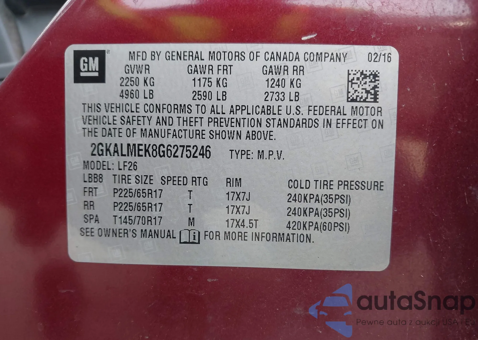 • VIN 2GKALMEK8G6275246