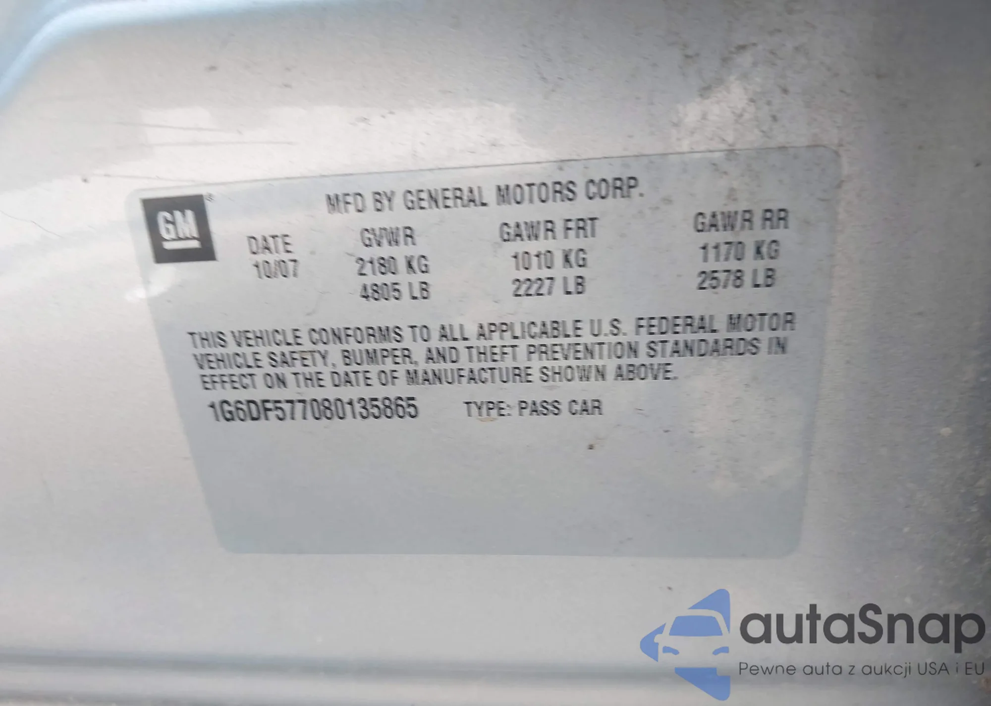 • VIN 1G6DF577080135865