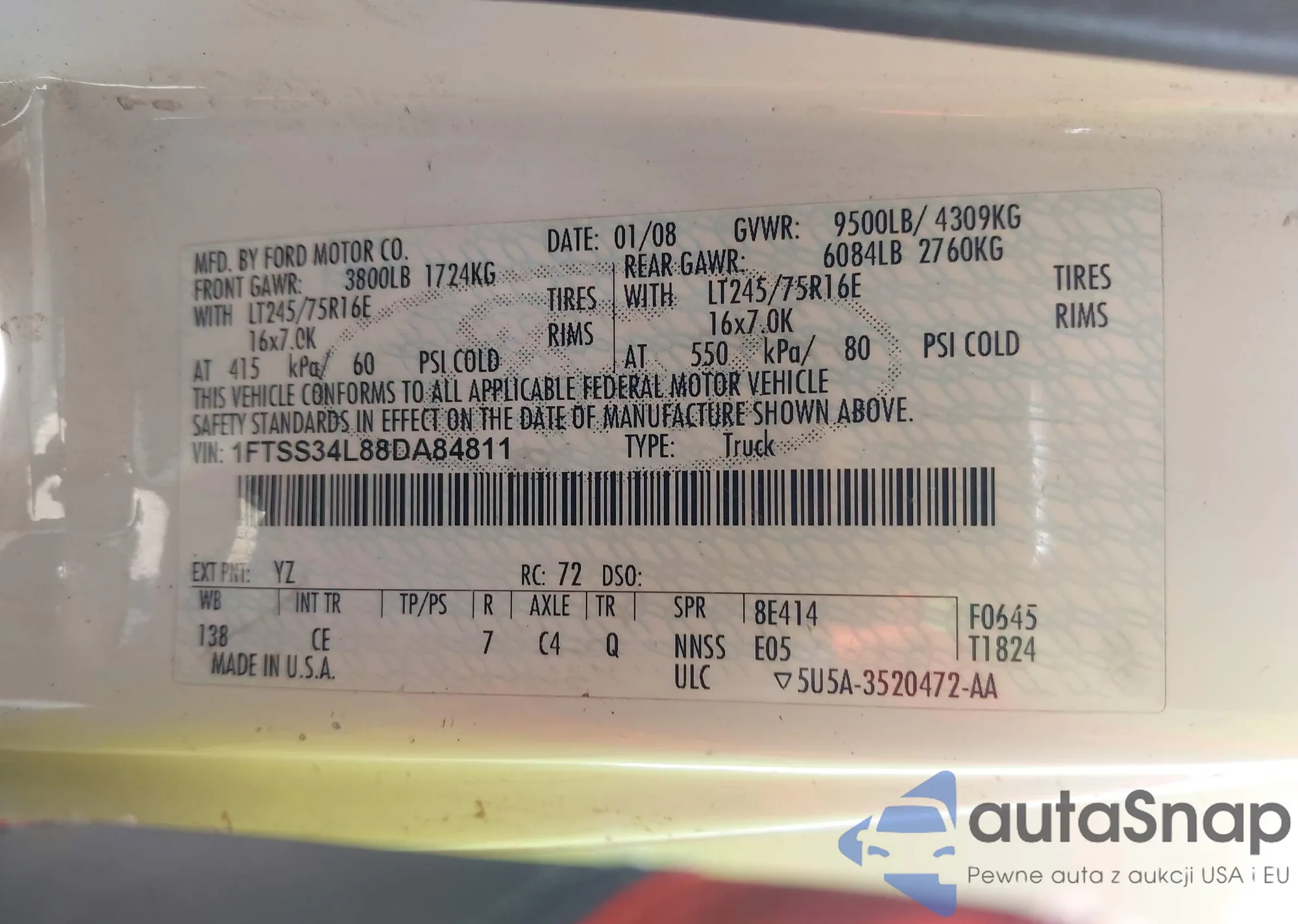LOT: 43283833 VIN: 1FTSS34L88DA84811