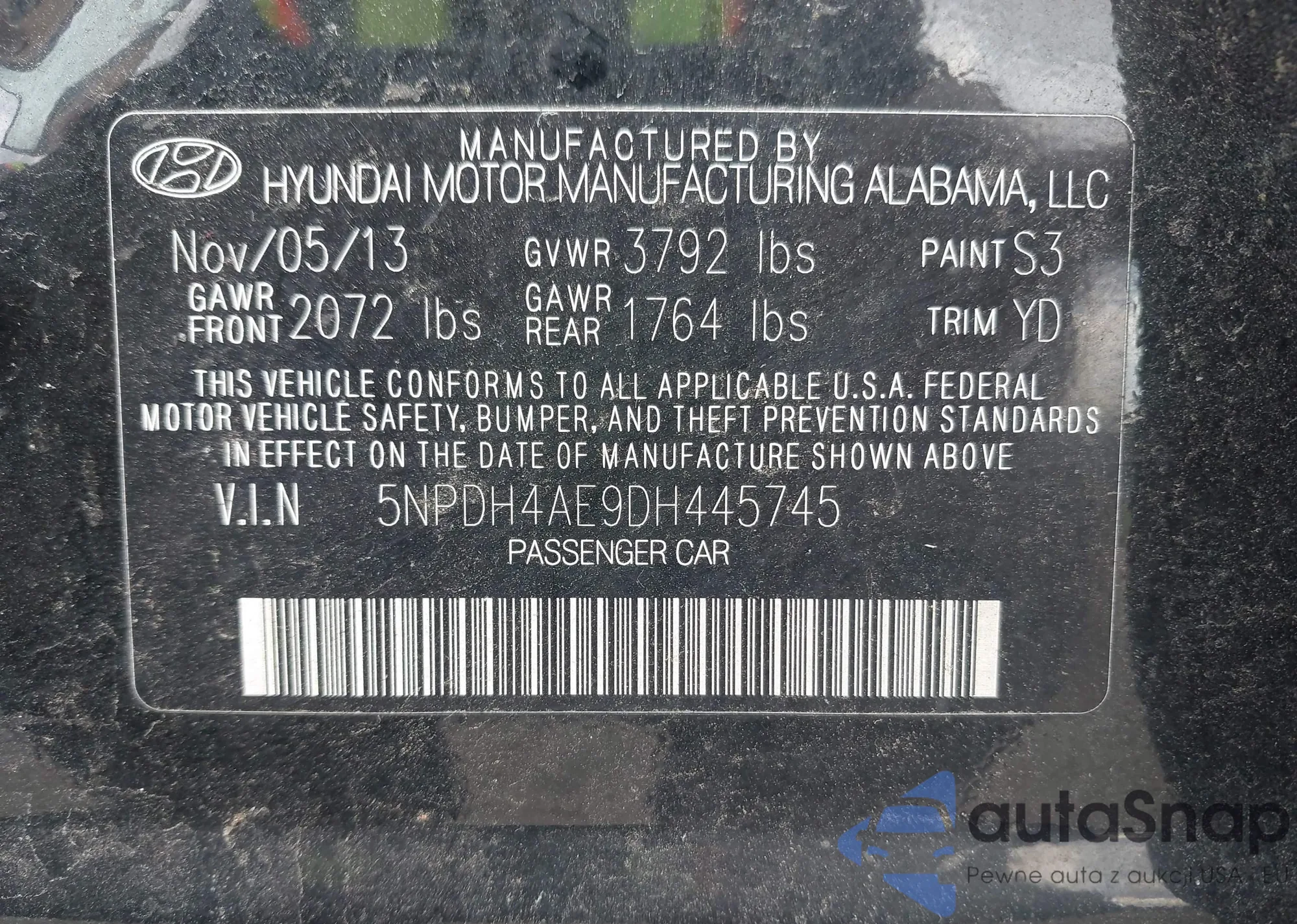 LOT: 43185105 VIN: 5NPDH4AE9DH445745