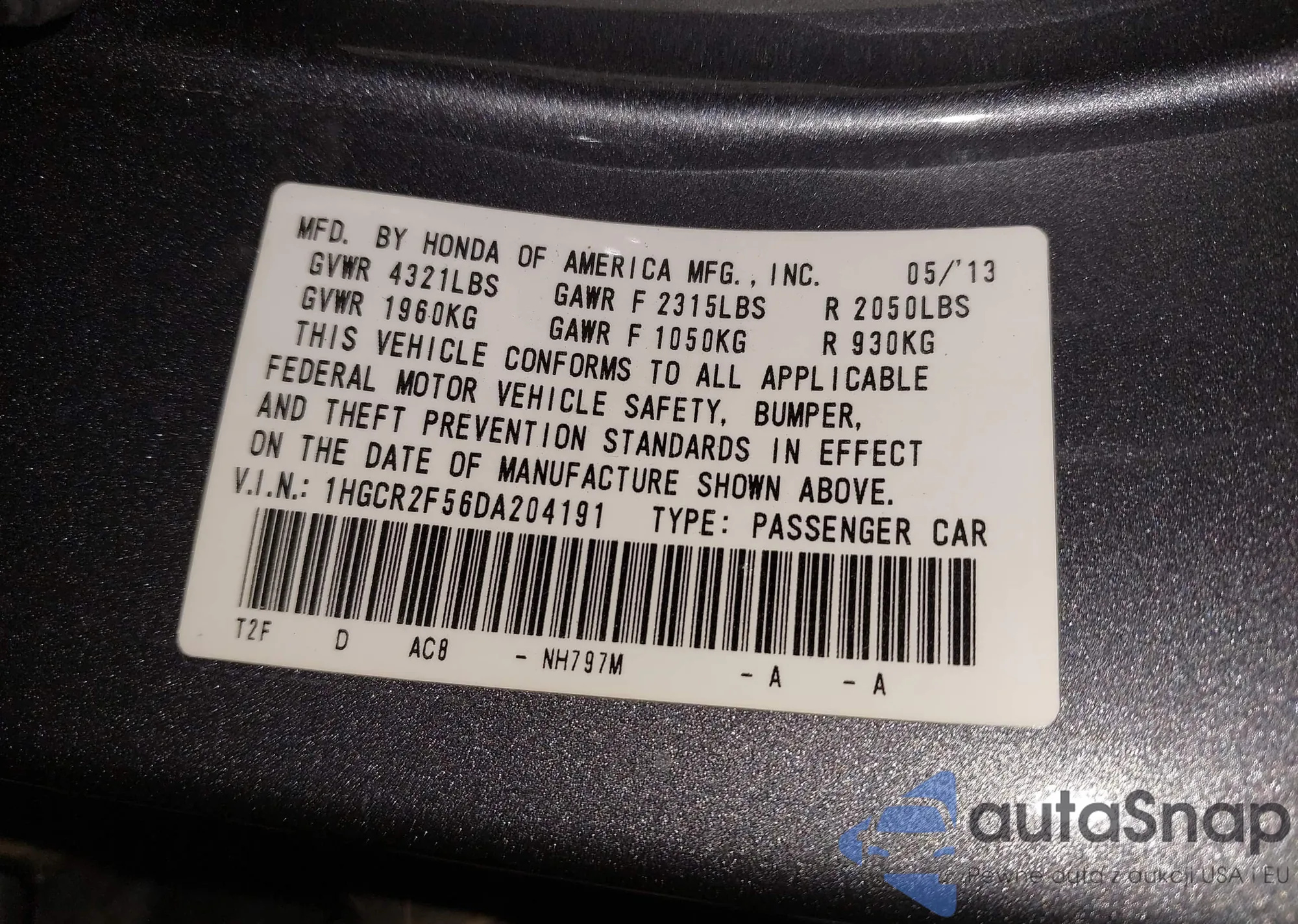 • VIN 1HGCR2F56EA131955