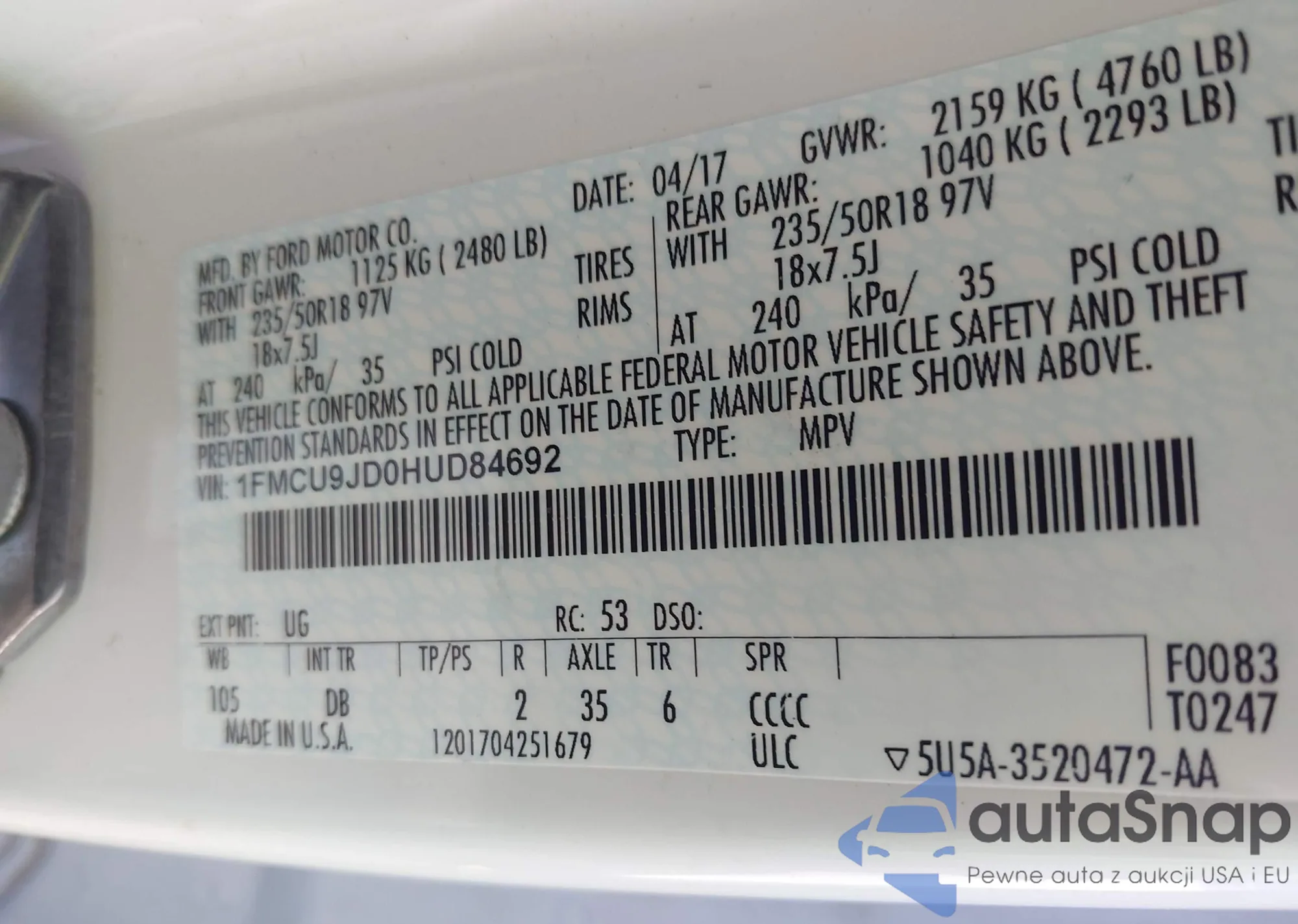 • VIN 4JGDF6EE1HA861910