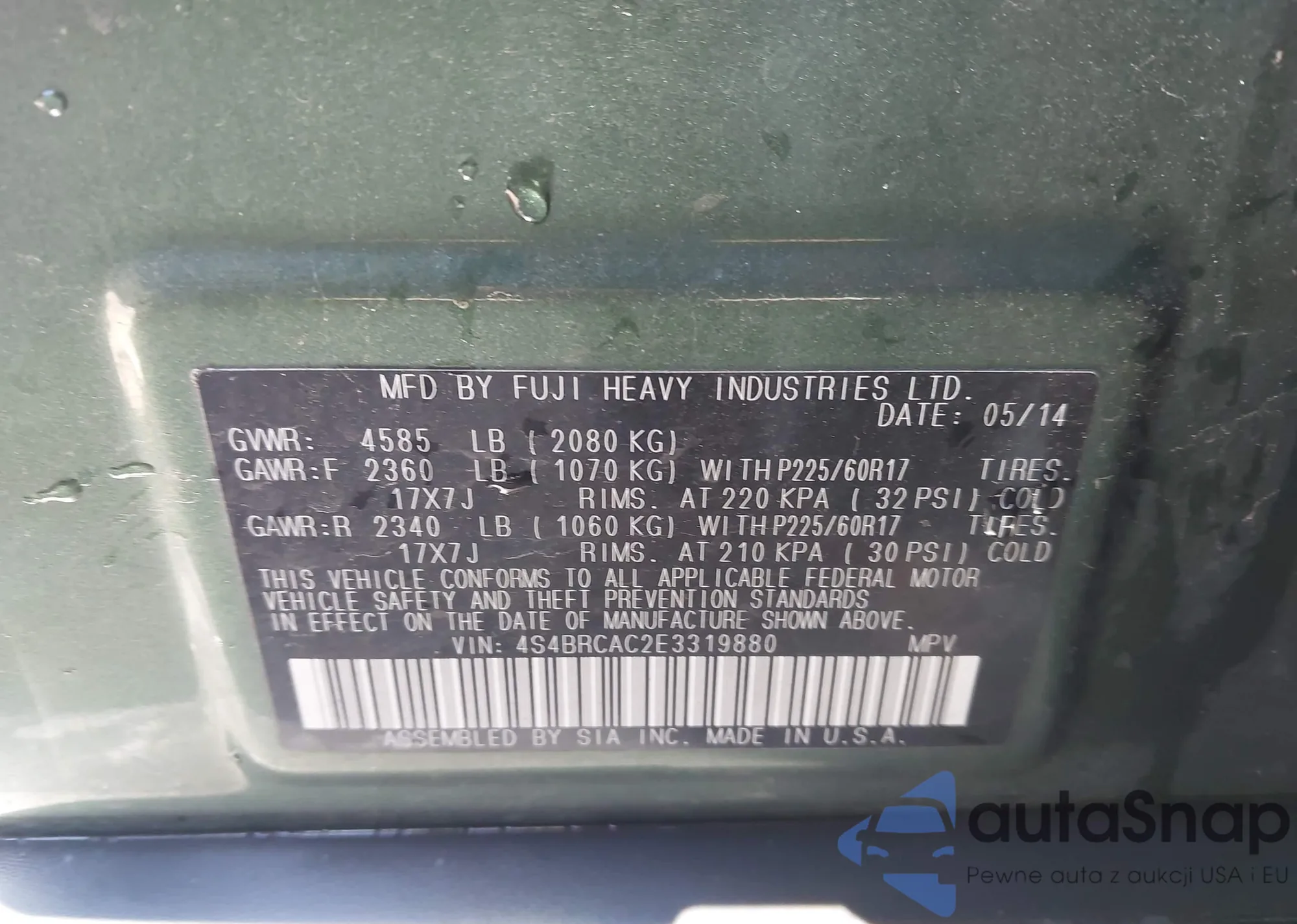 • VIN 4S4BRCAC2E3319880