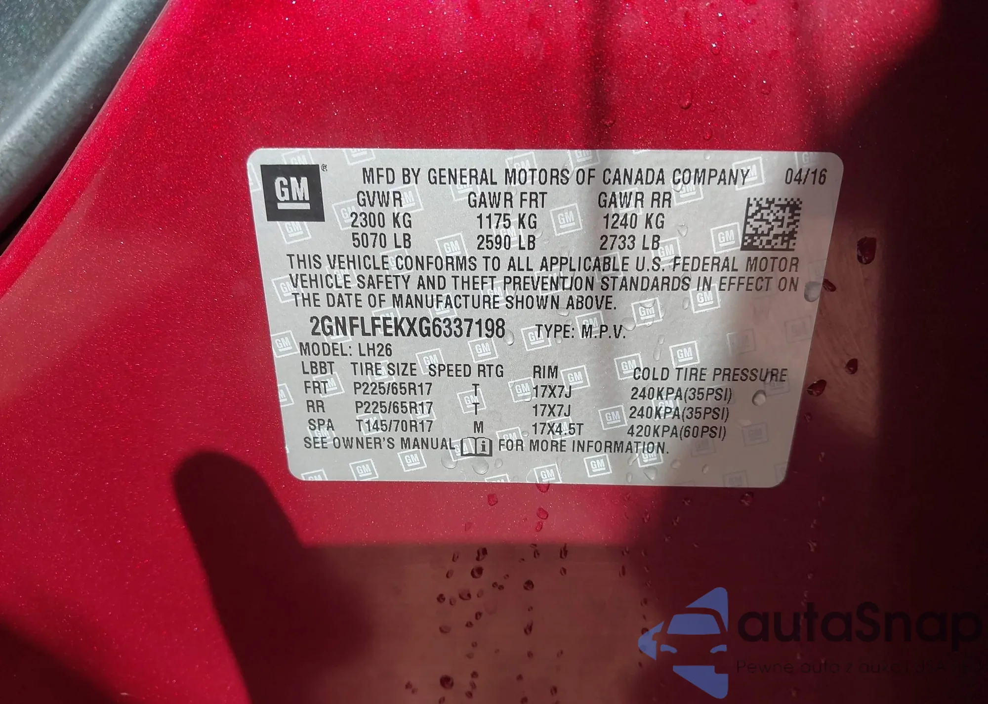 • VIN 2GNFLFEKXG6337198