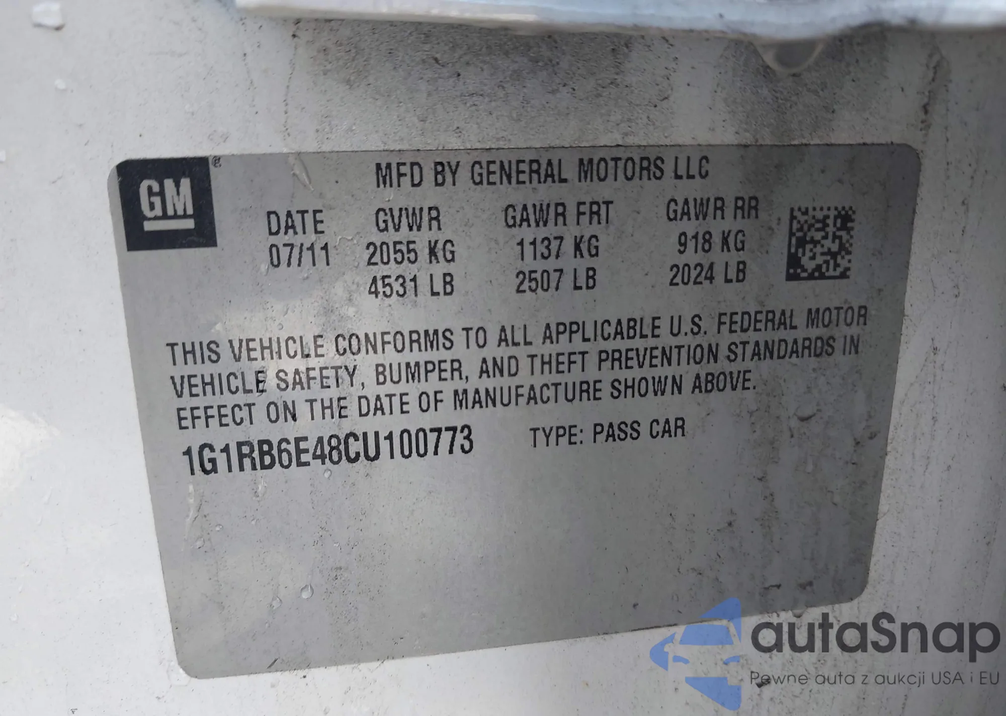 • VIN 1G1RB6E48CU100773
