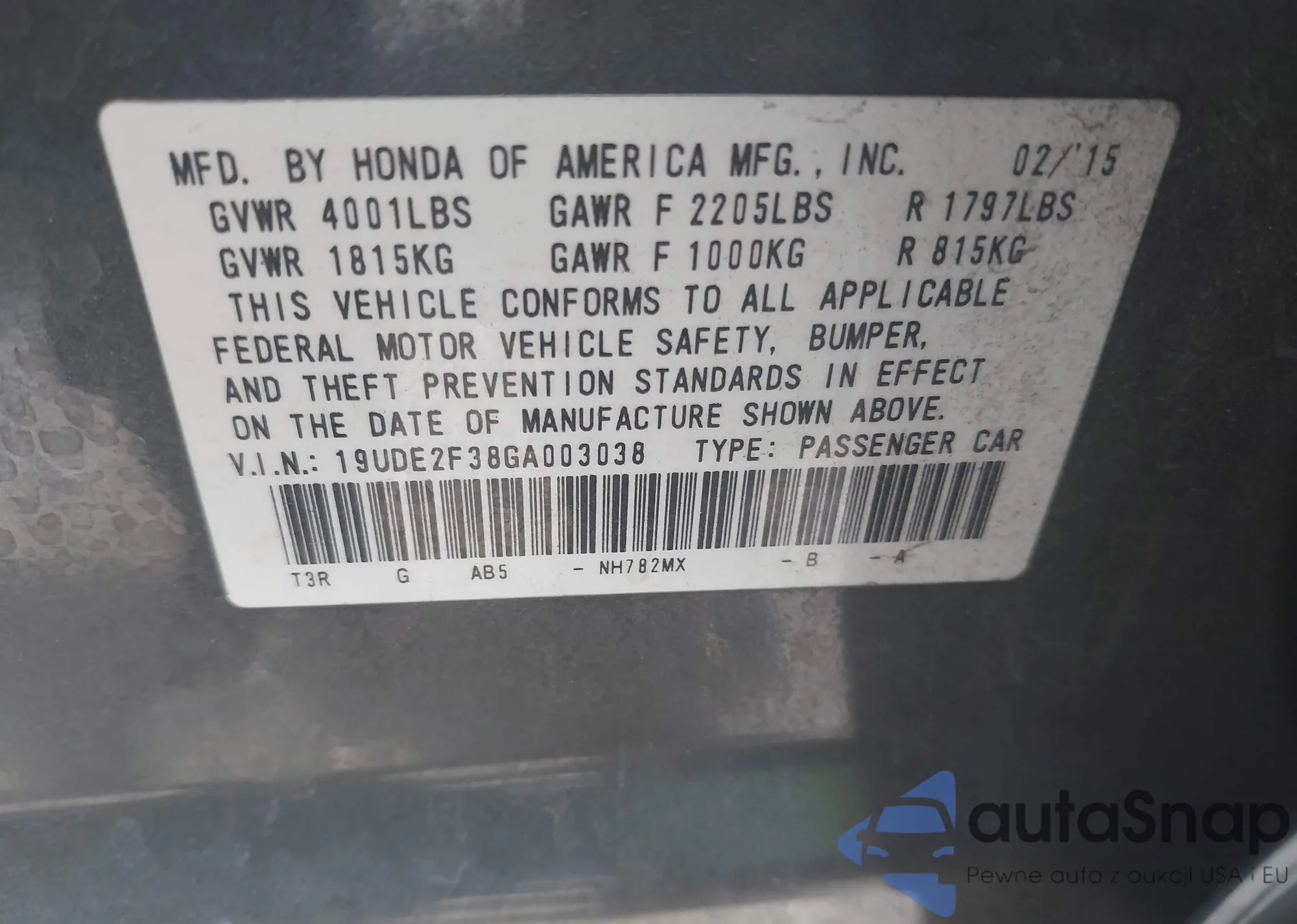 • VIN 19UDE2F38GA003038