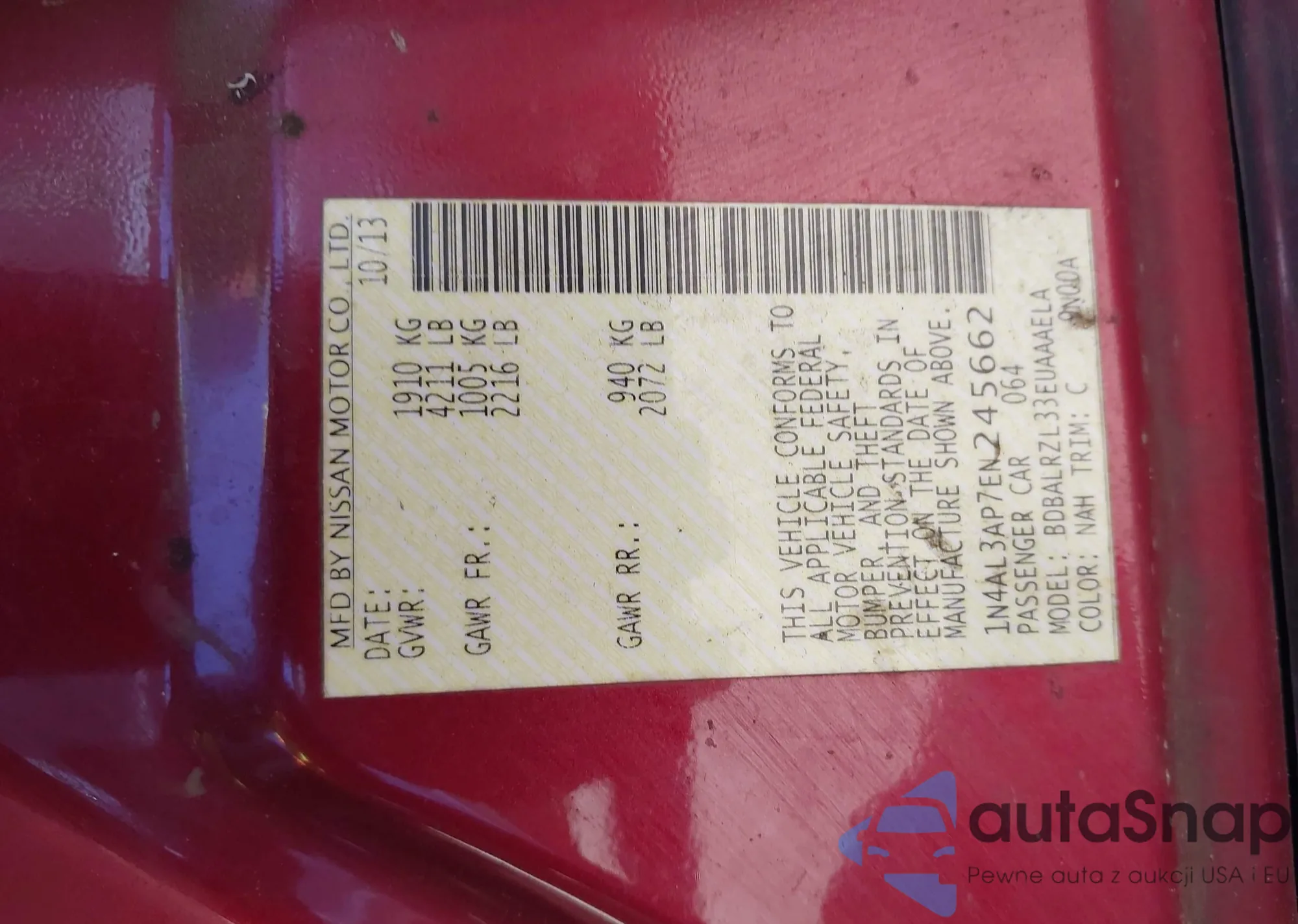LOT: 43444836 VIN: 1N4AL3AP7EN245662