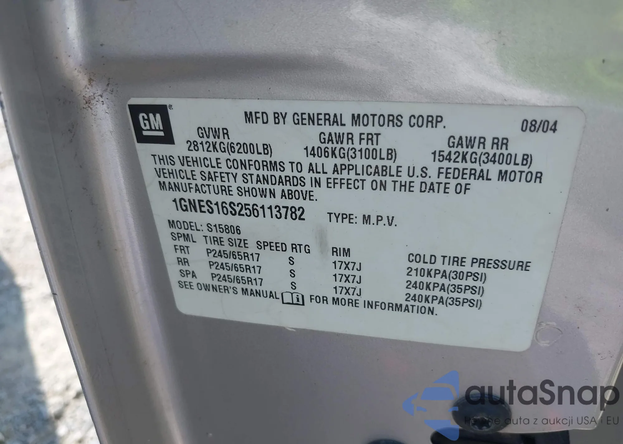 • VIN 1GNDT13W8R0140963