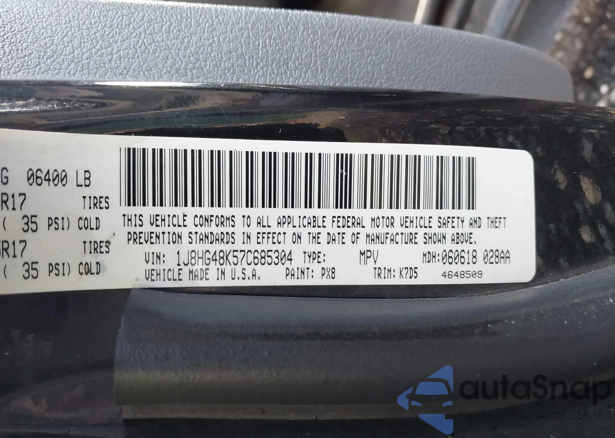LOT: 42175382 VIN: 1J8HG48K57C685304