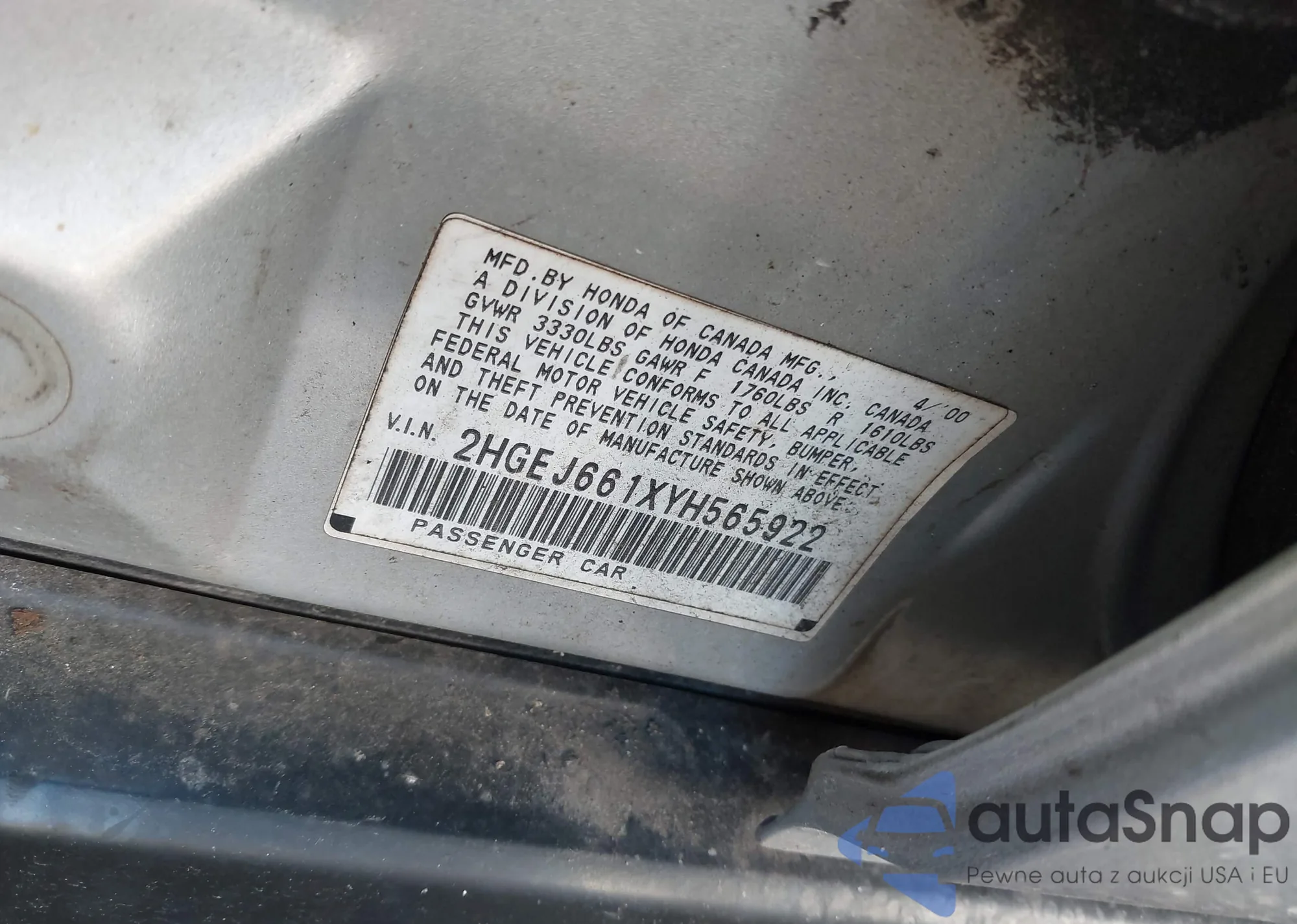 • VIN 2HGEJ661XYH565922