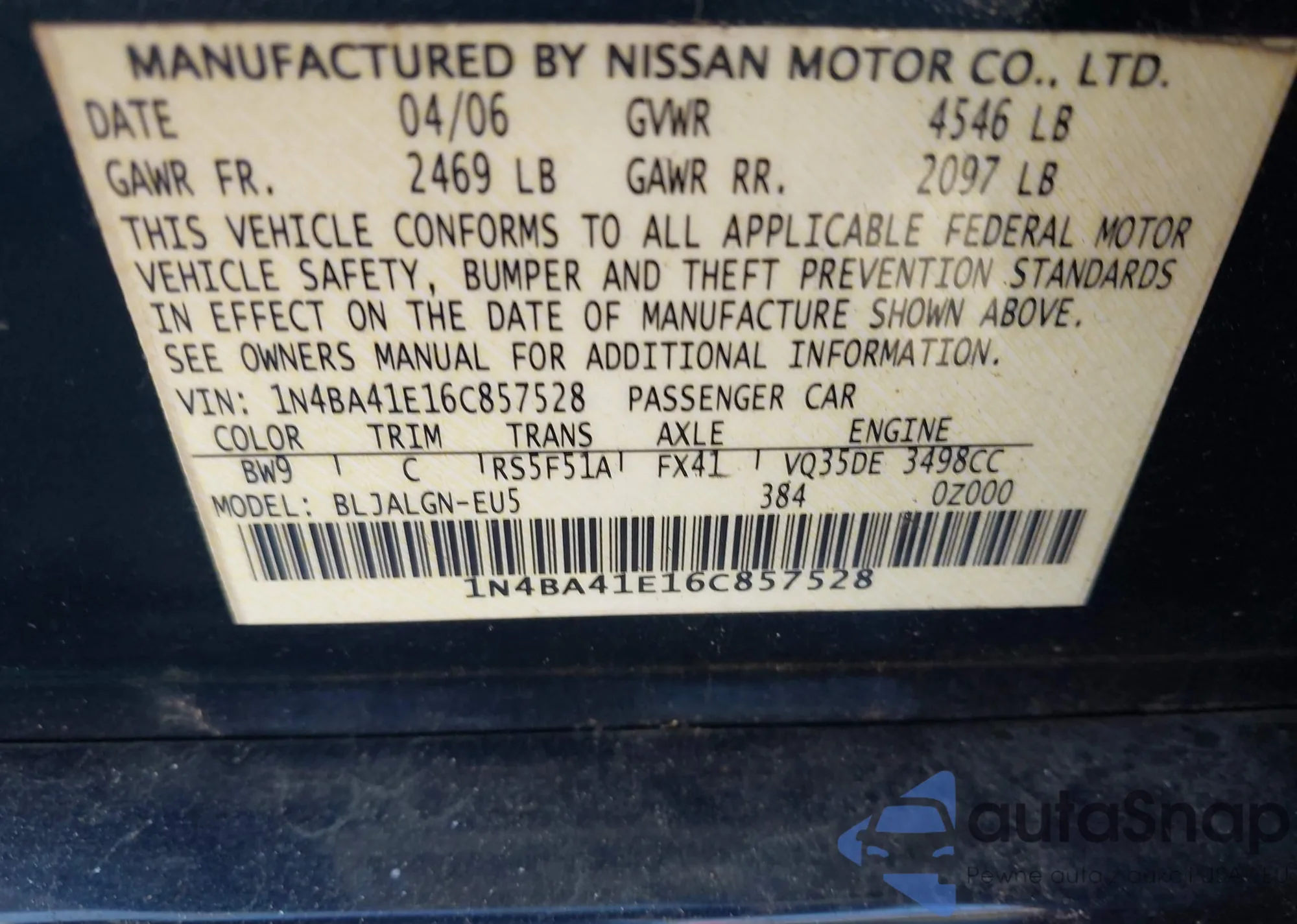 • VIN 1N4BA41E16C857528