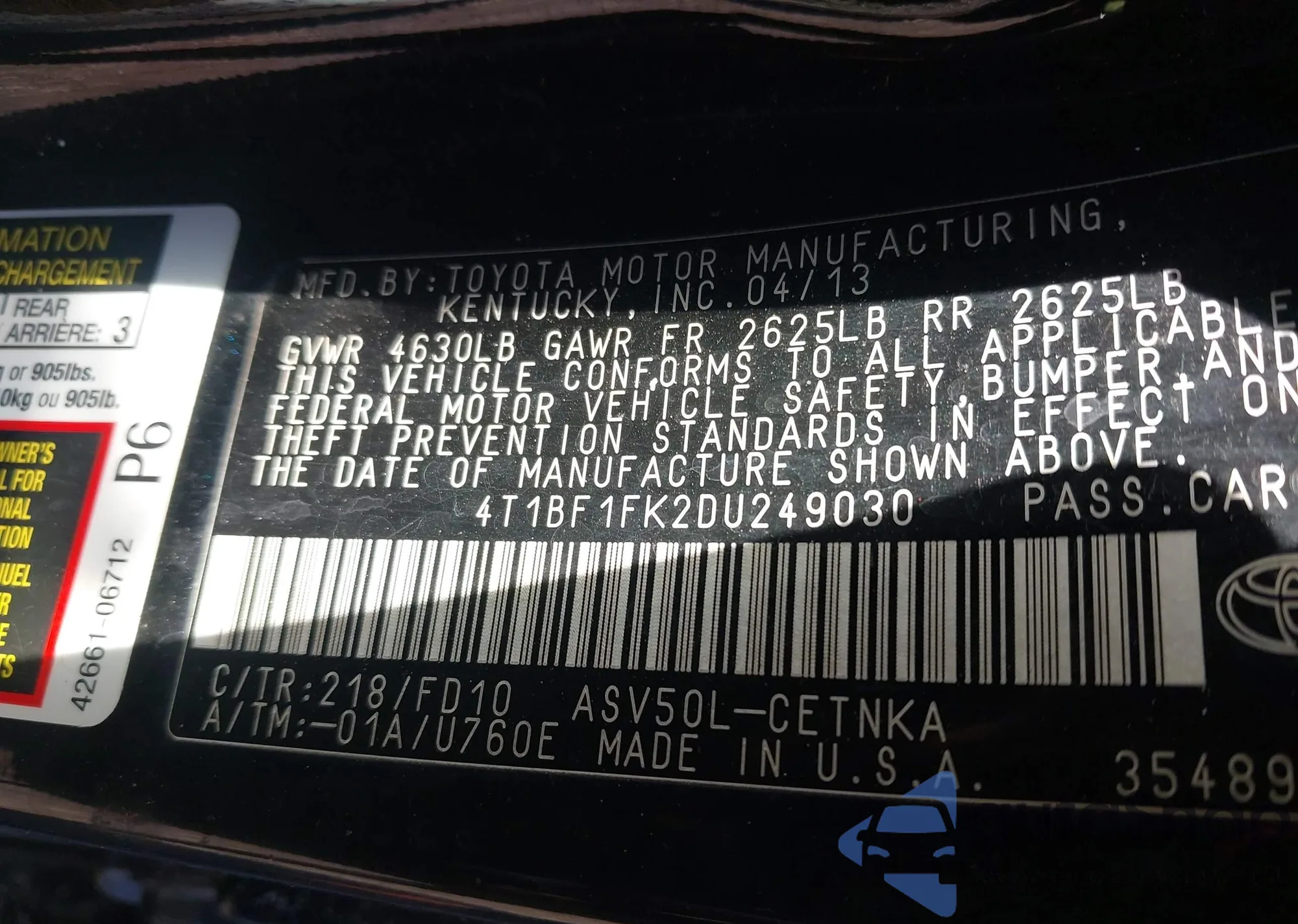 • VIN 2T3DFREV0DW120374