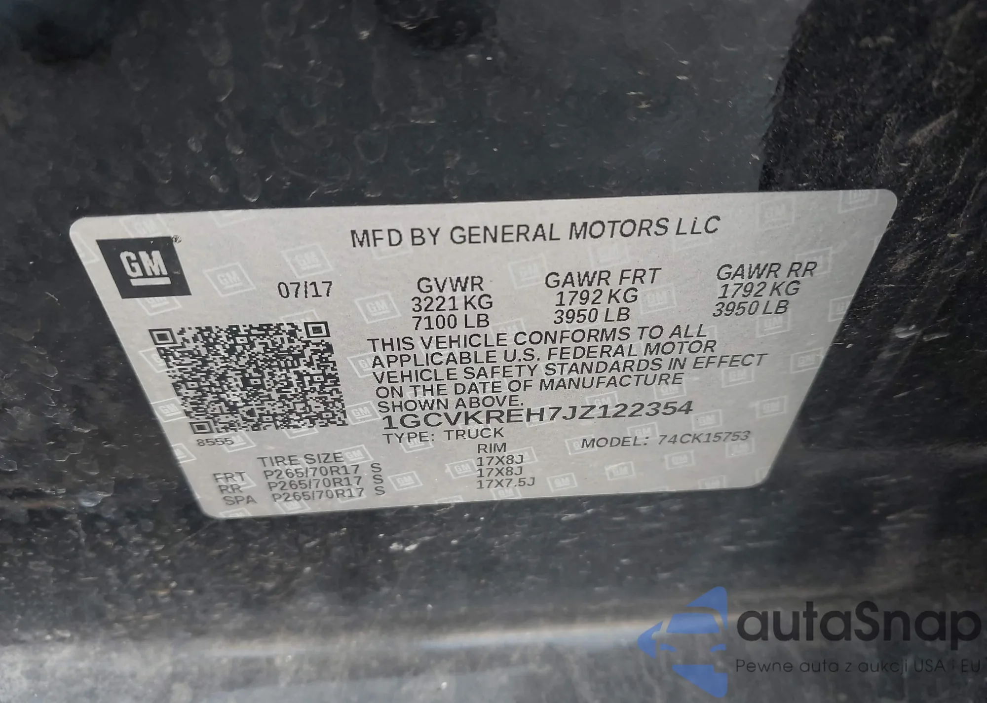 • VIN 1GCVKREH7JZ122354