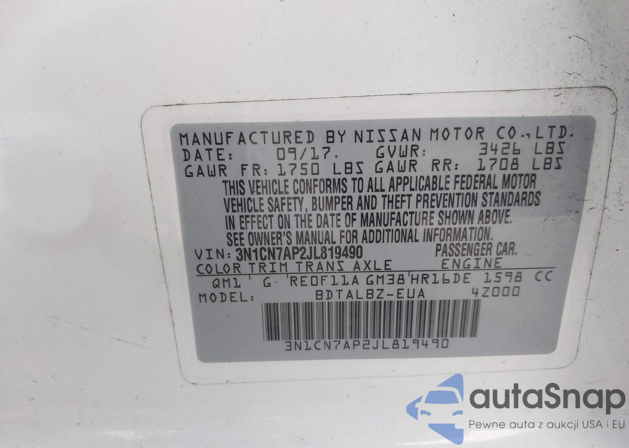 • VIN 3N1CN7AP2JL819490