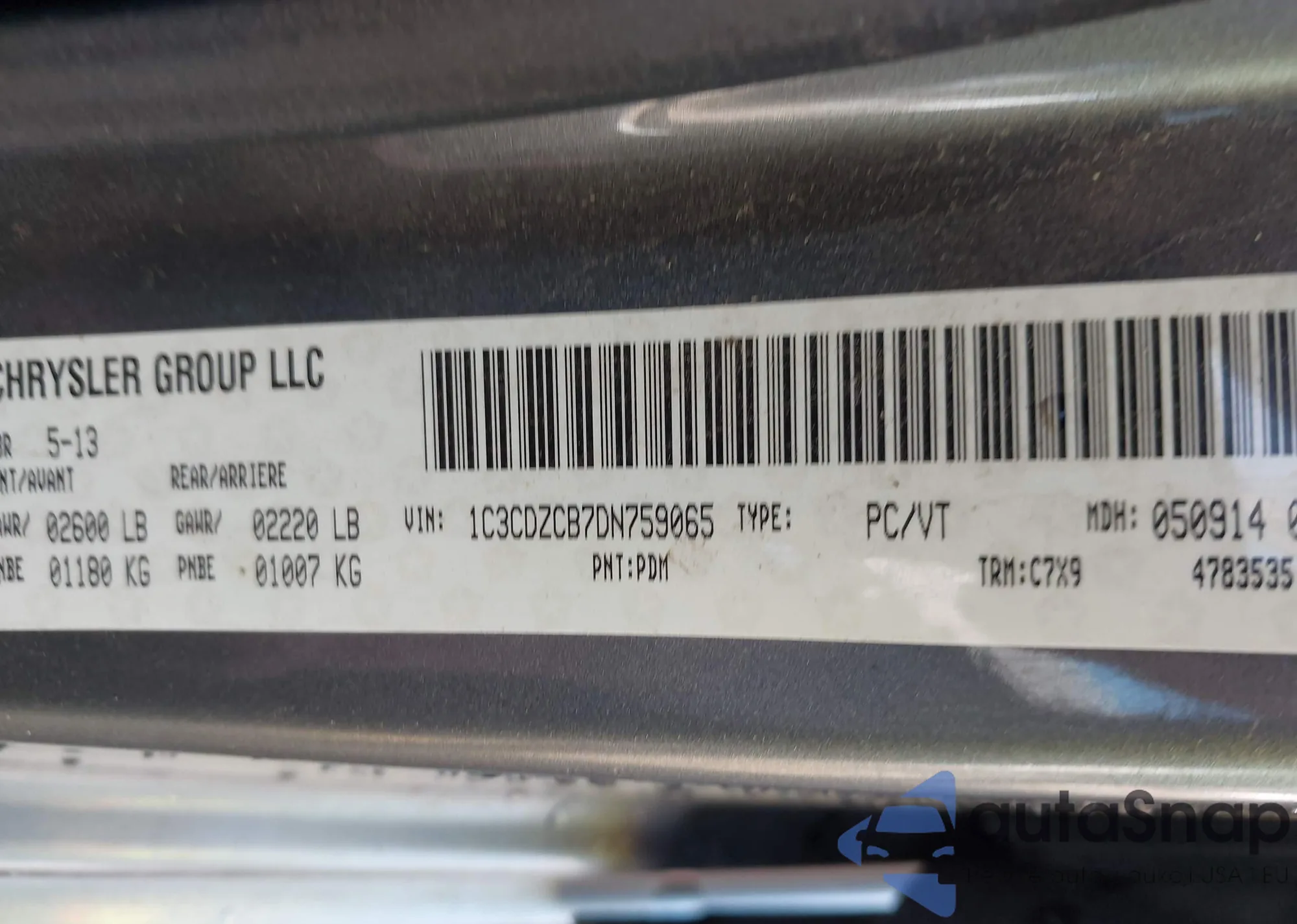 • VIN 1C3CDZCB7DN759065