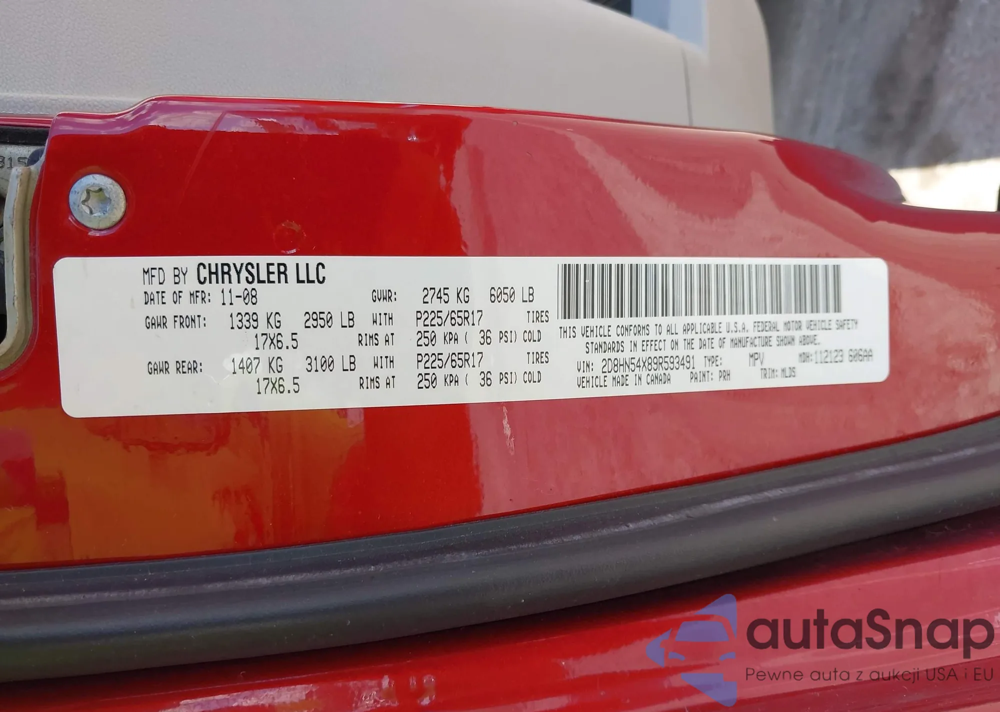 • VIN 2D8HN54X89R593491