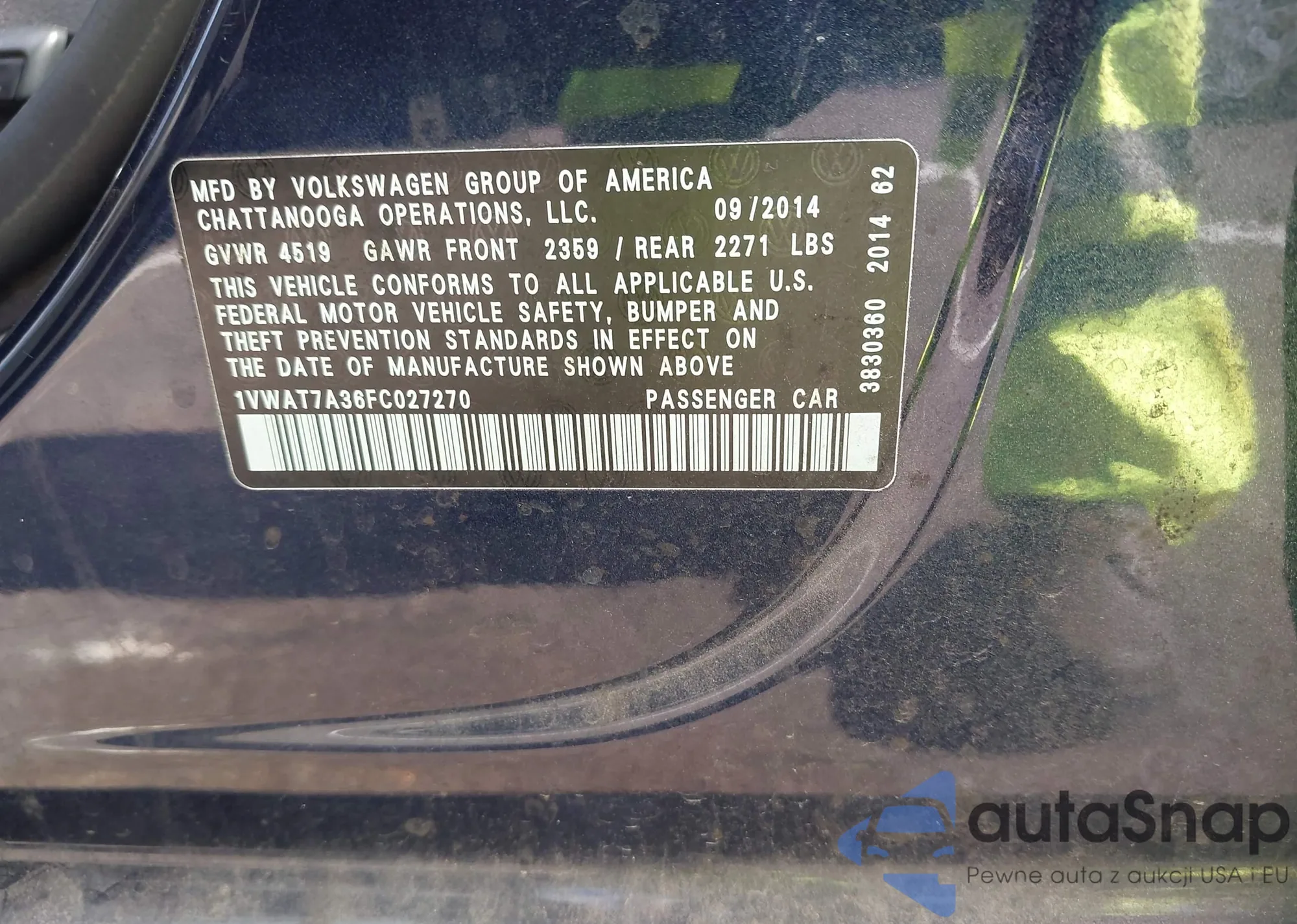 • VIN 1VWAT7A36FC027270