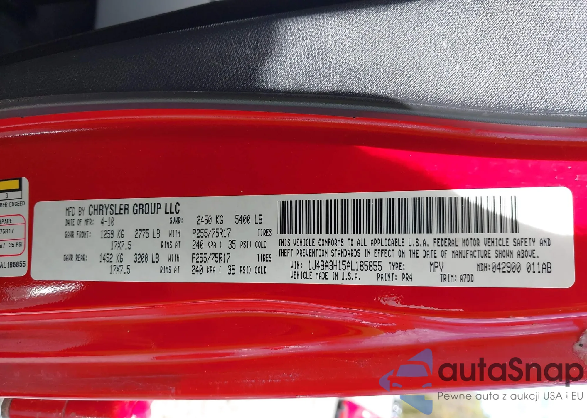 • VIN 1N4AL2AP7BN415931