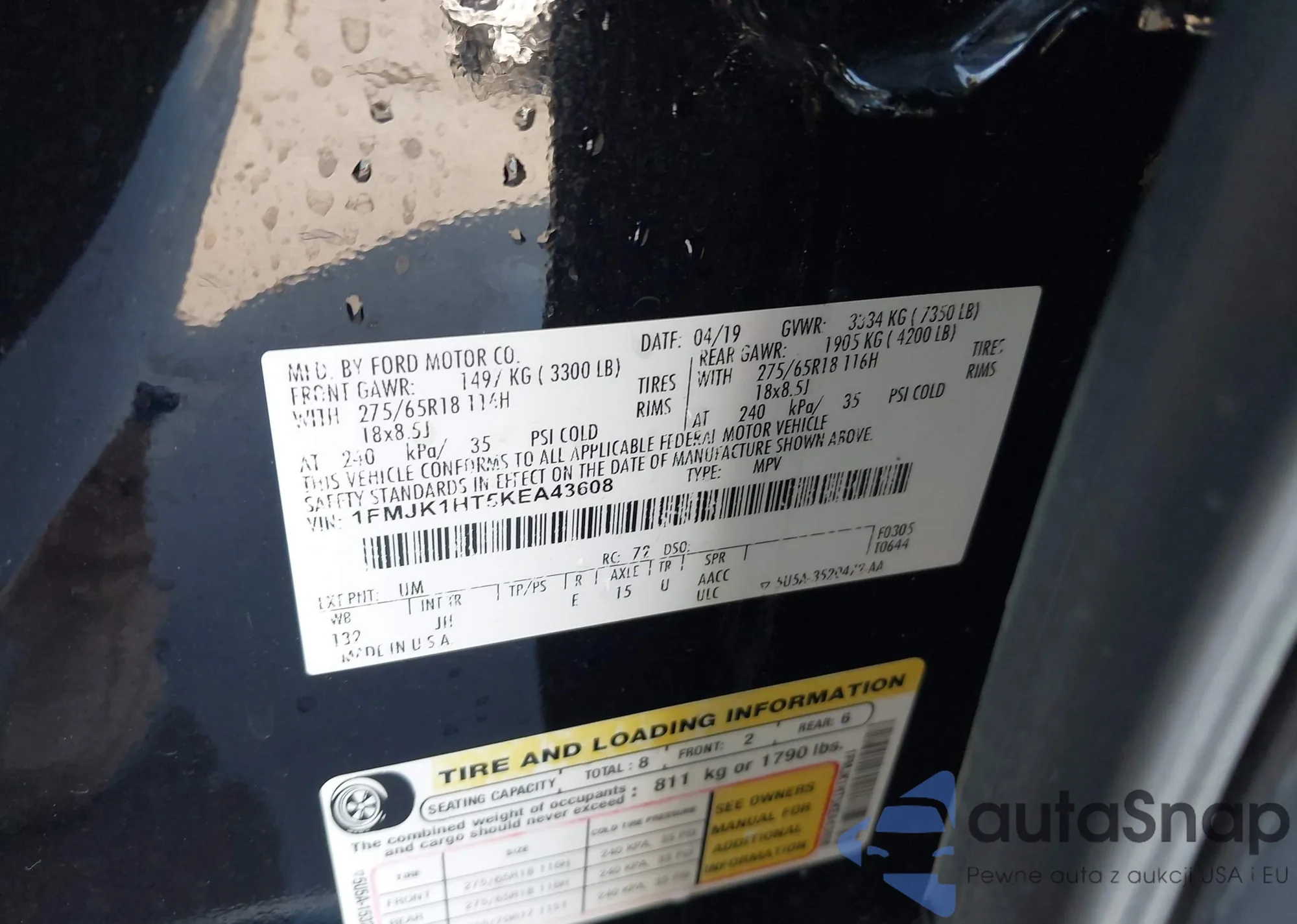 • VIN 1FMJK1HT5KEA43608