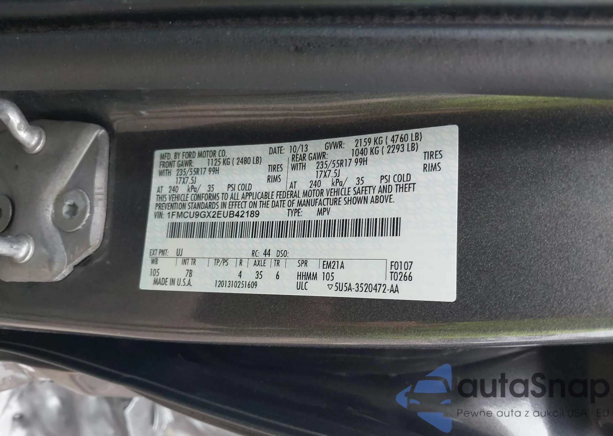 LOT: 42640910 VIN: 1FMCU9GX2EUB42189