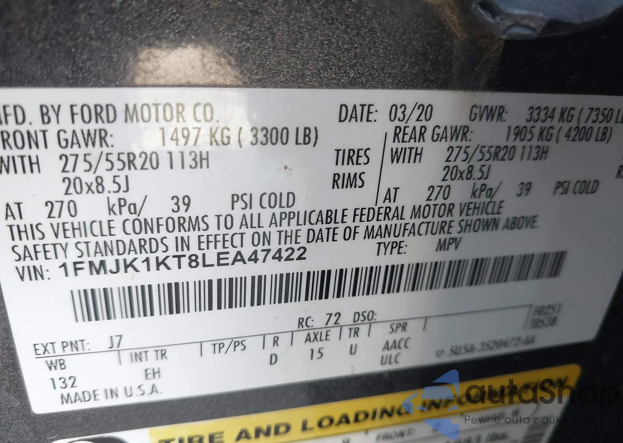 • VIN 1FMJK1KT8LEA47422