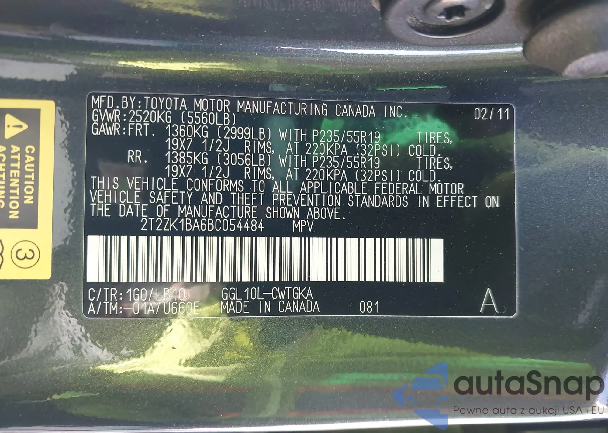 • VIN 2T2ZK1BA6BC054484