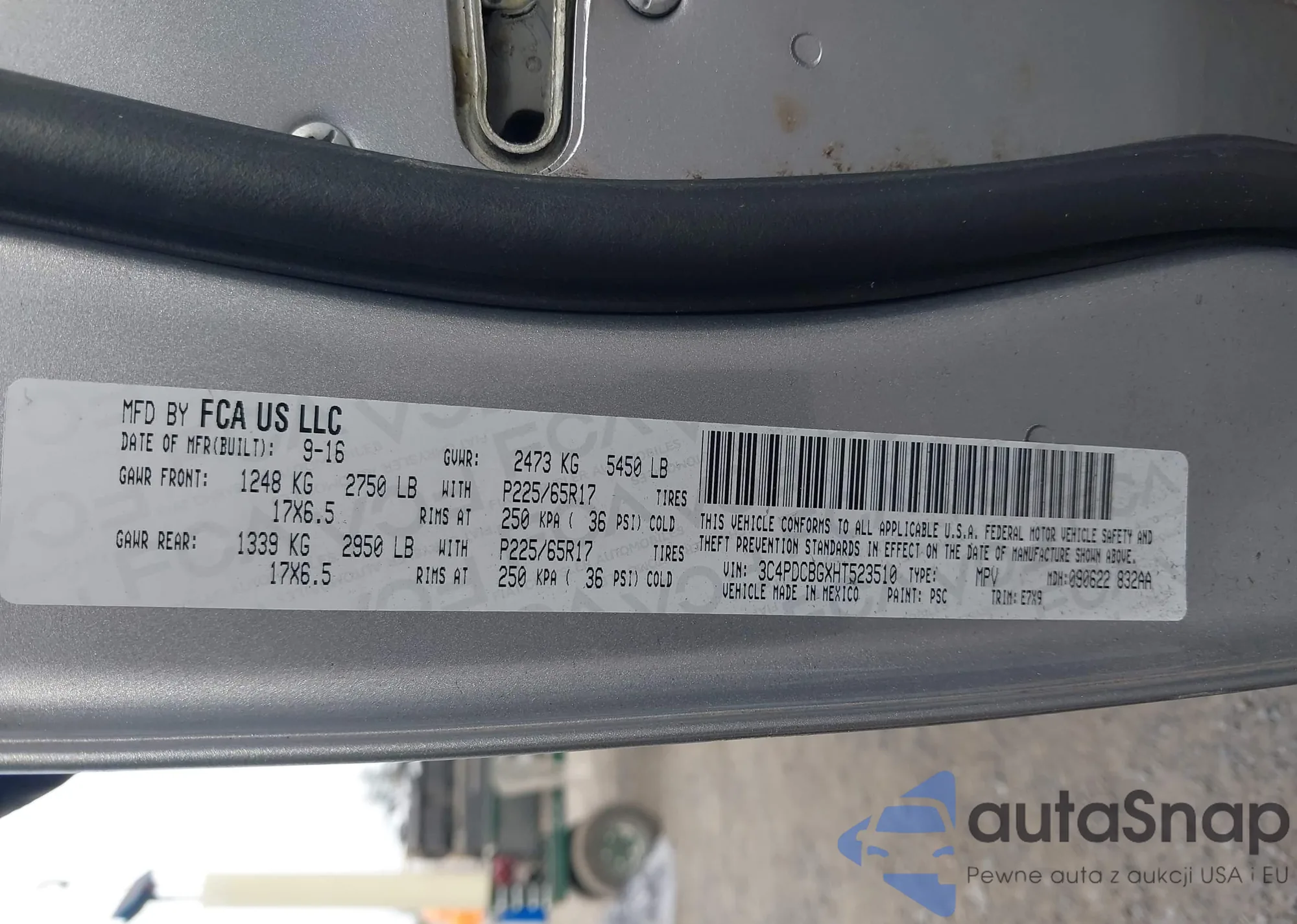 LOT: 43276825 VIN: 3C4PDCBGXHT523510