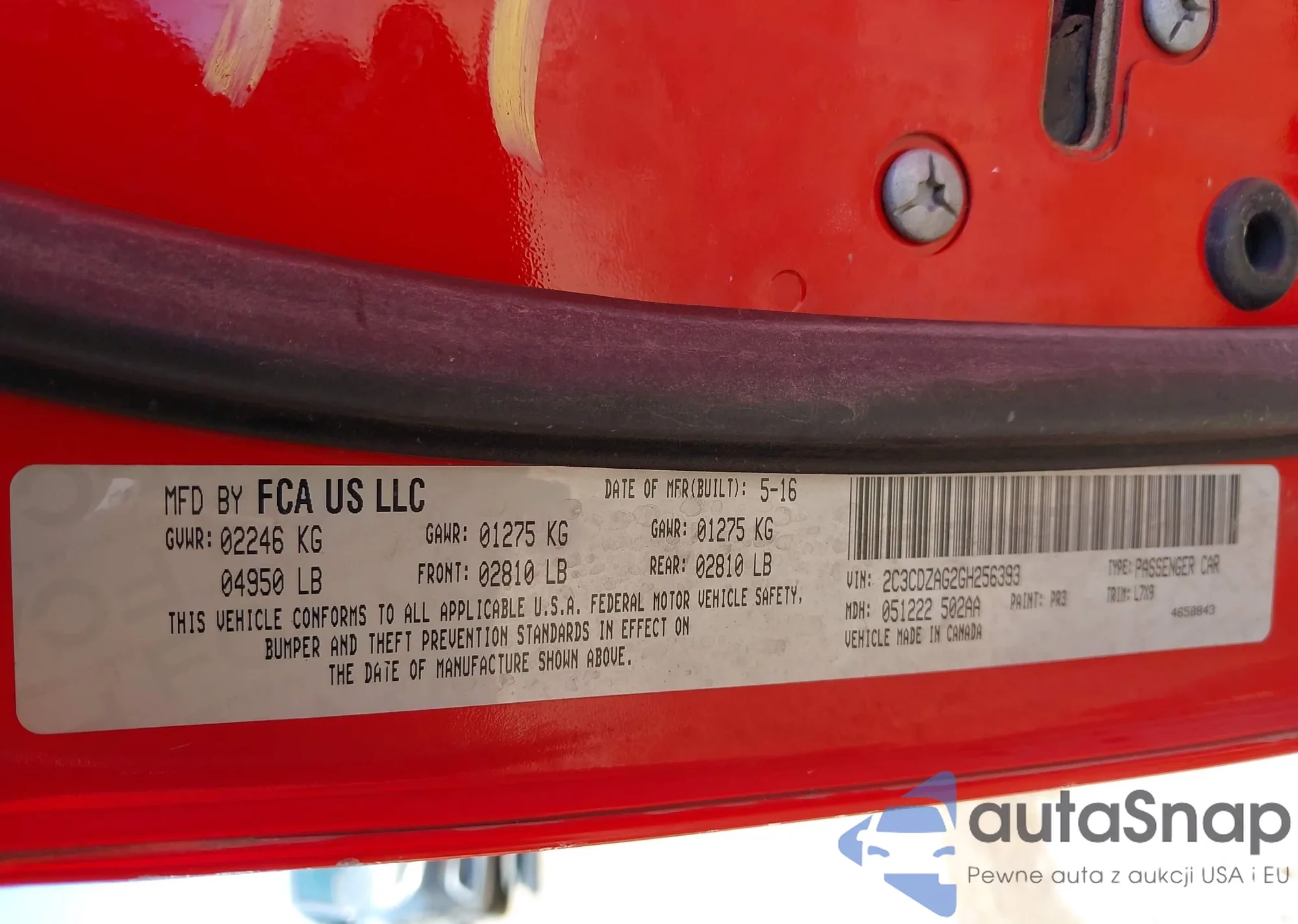 • VIN 2C3CDZAG2GH256393