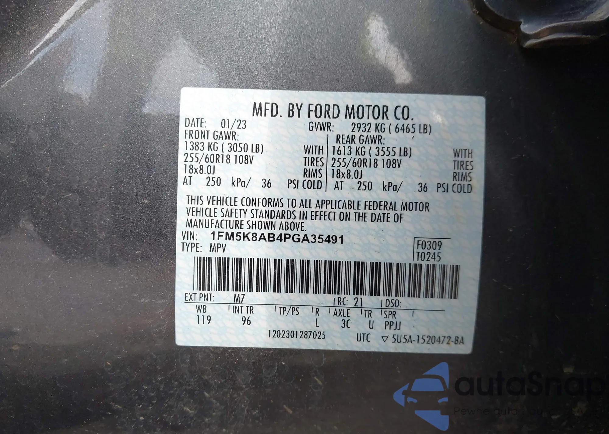 • VIN 1FM5K8AB4PGA35491