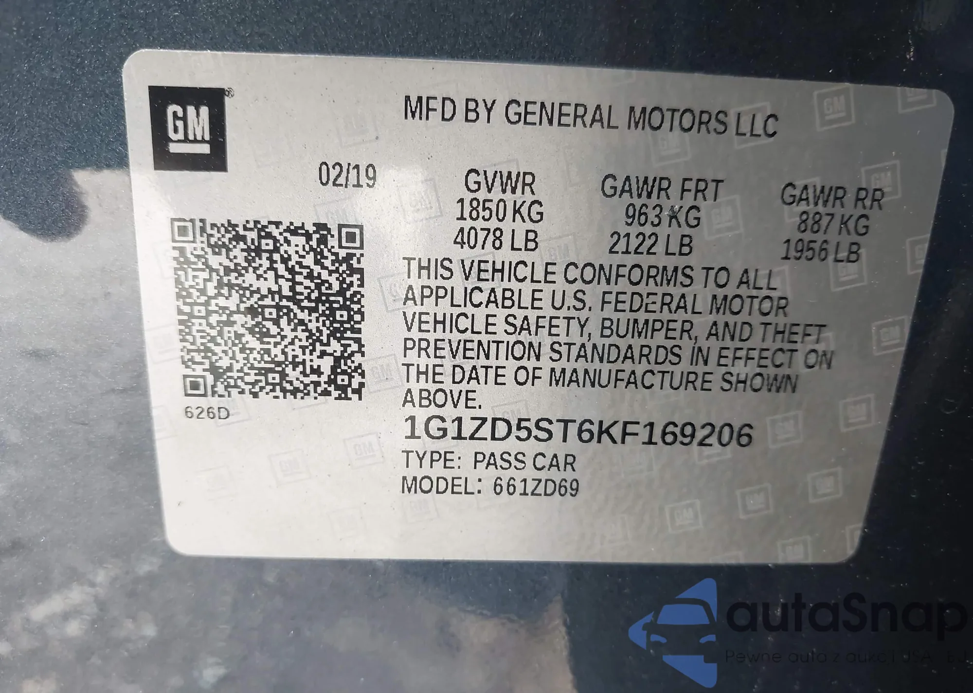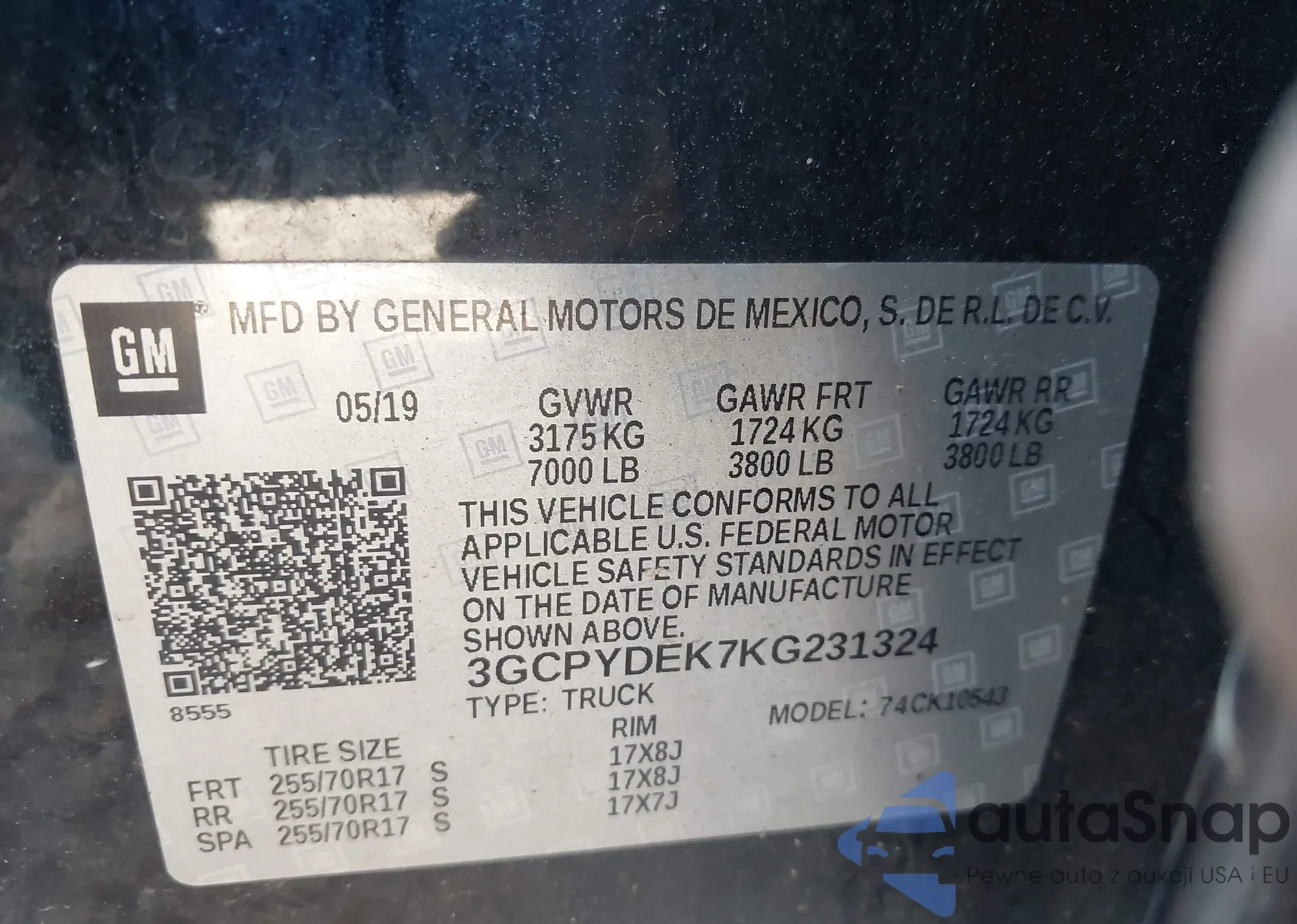 • VIN 3GCPYDEK7KG231324