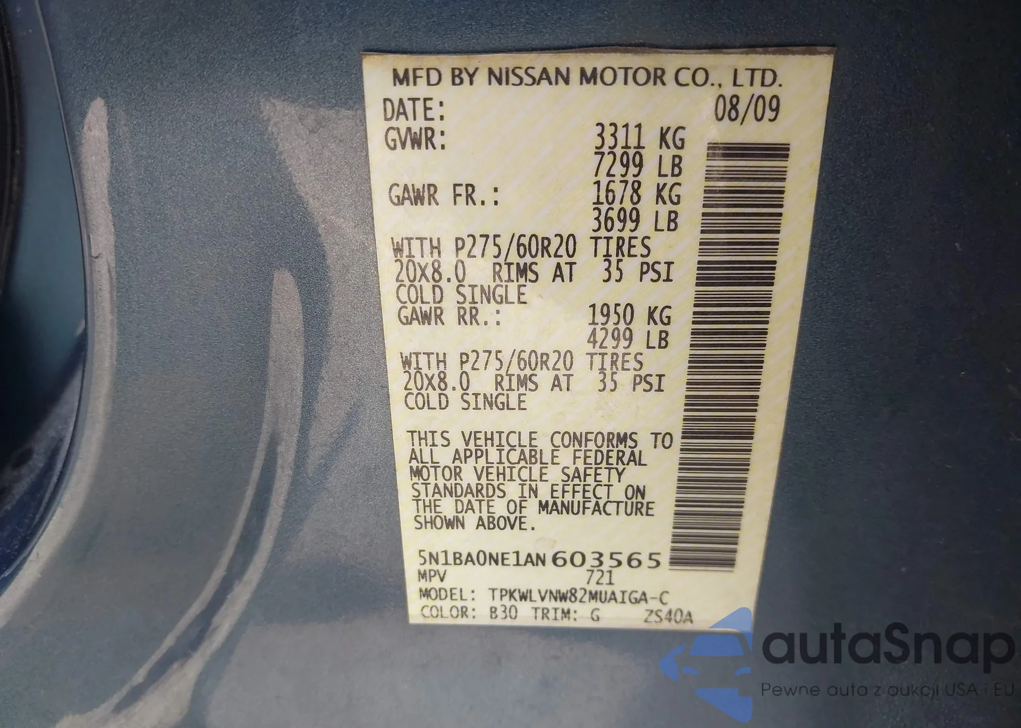 • VIN 5N1BA0NE1AN603565