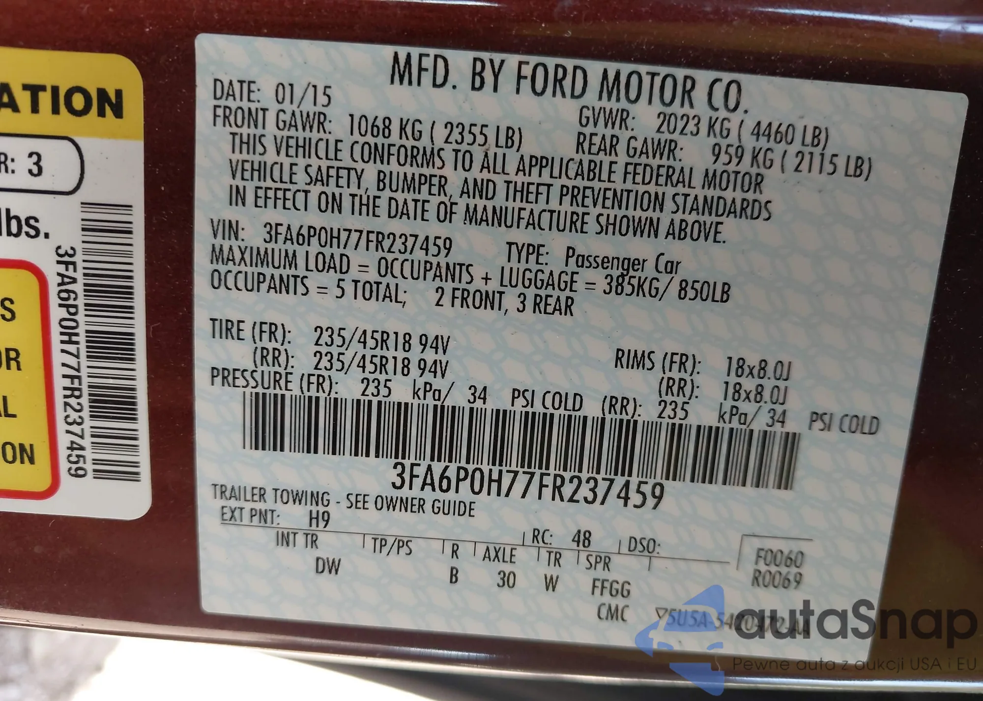 • VIN 3FA6P0H77FR237459