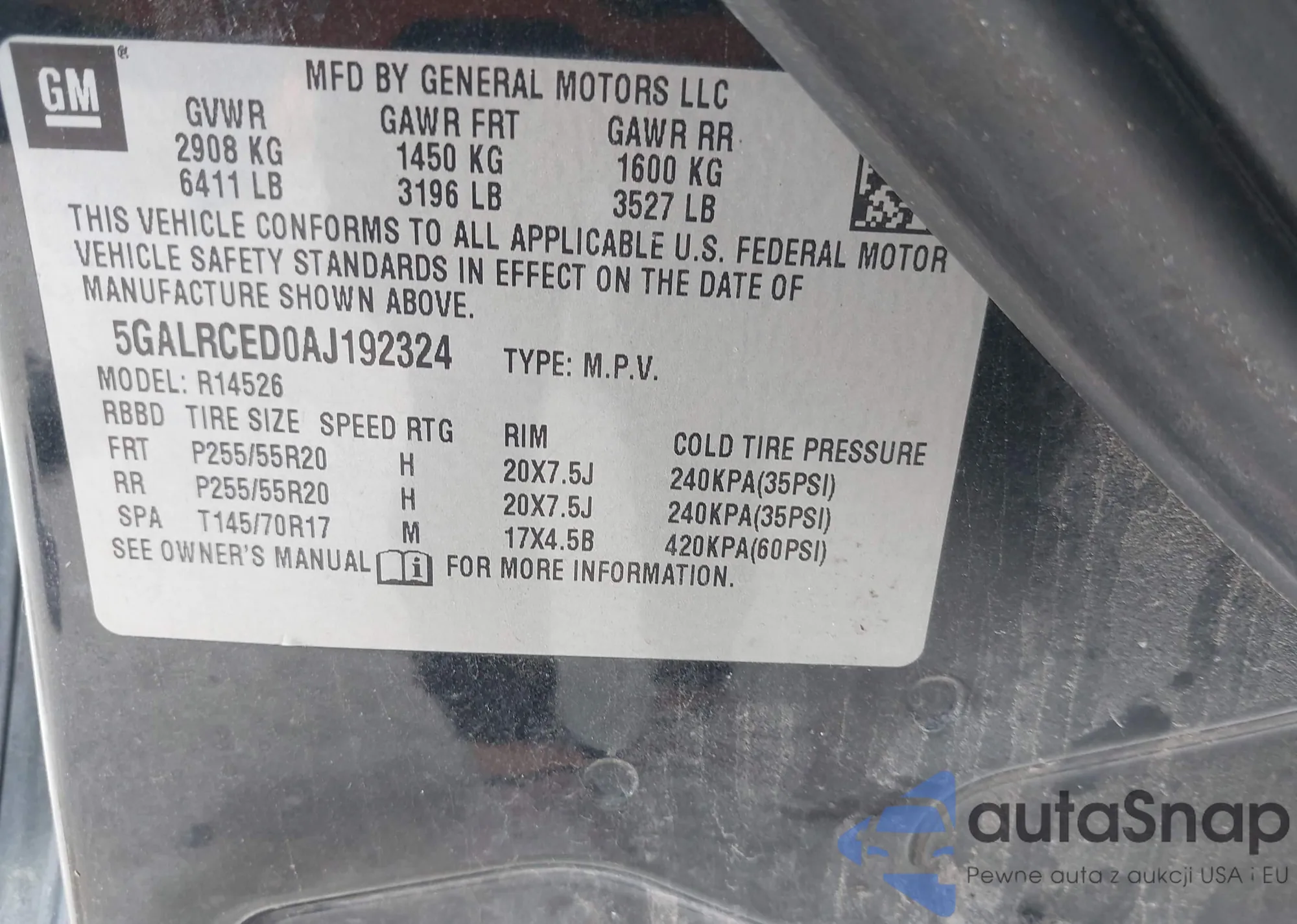 LOT: 43318943 VIN: 5GALRCED0AJ192324