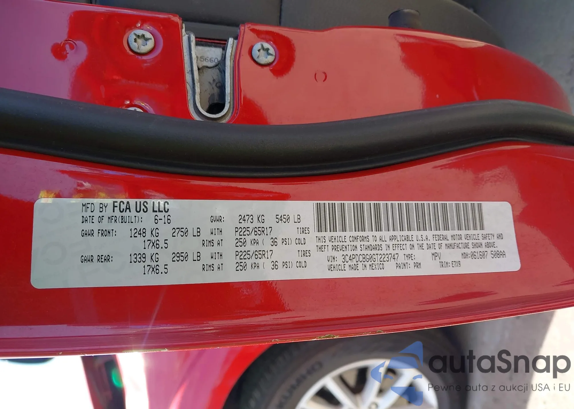 LOT: 43369293 VIN: 3C4PDCBG0GT223747