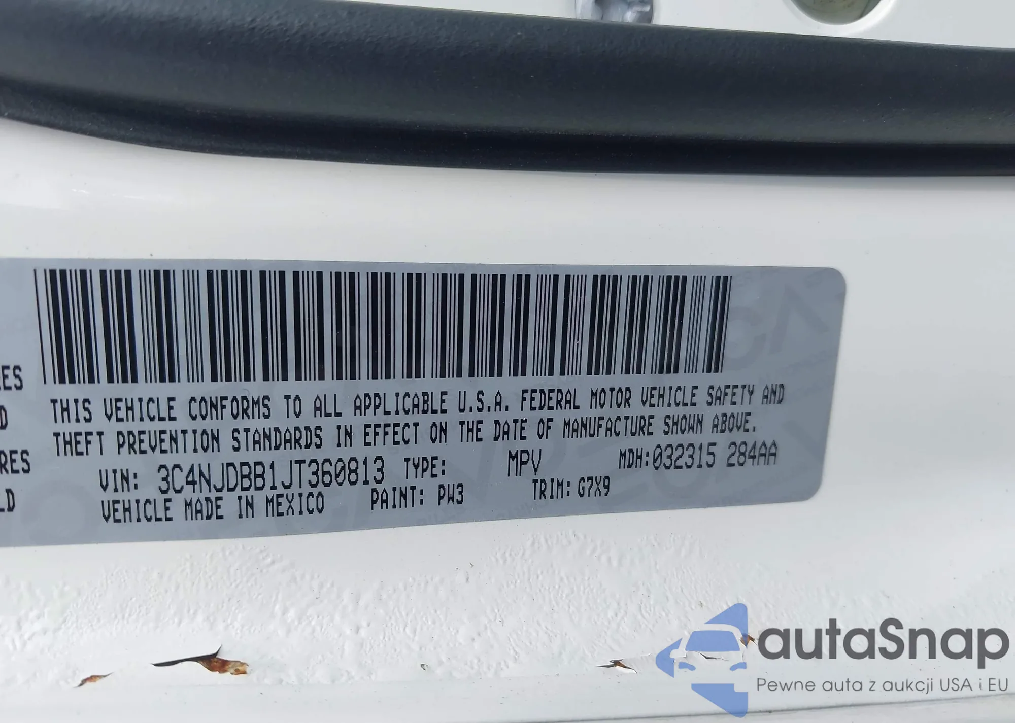 • VIN 3C4NJDBB1JT360813