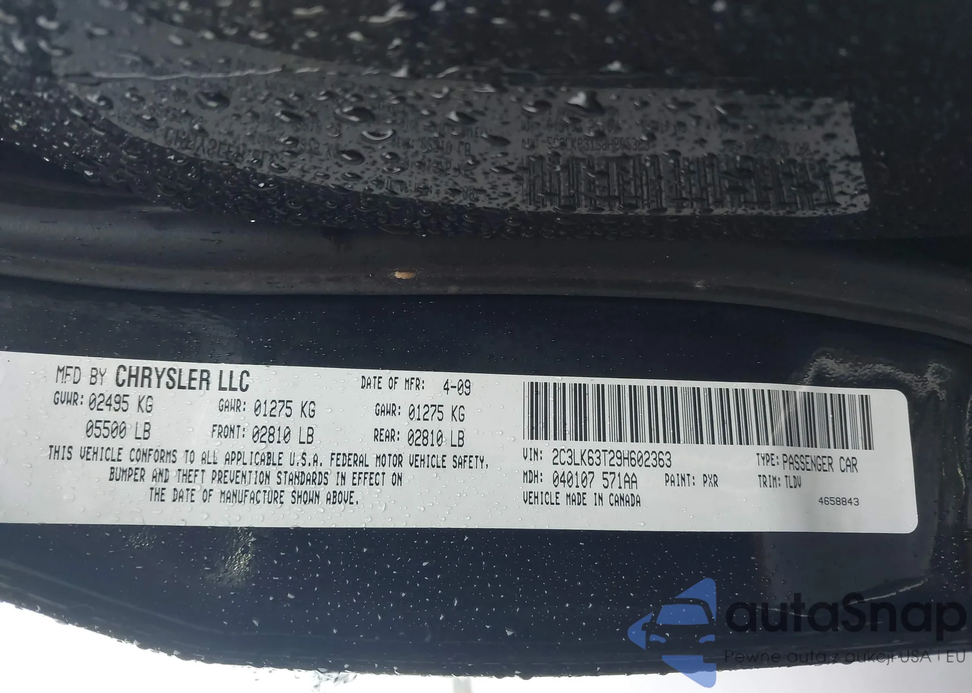 LOT: 42936811 VIN: 2C3LK63T29H602363