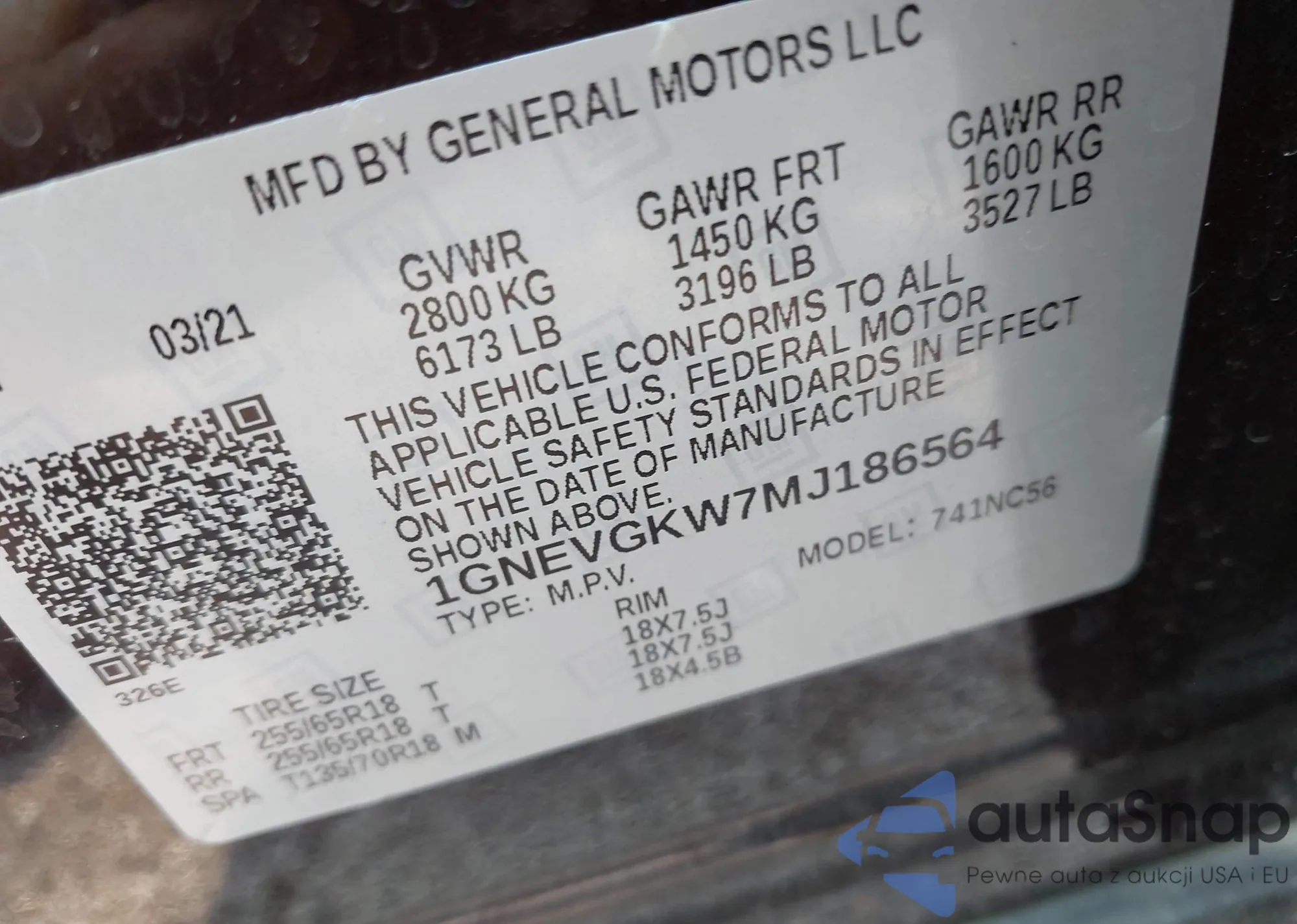 • VIN 1GNLCDEC7HR306870