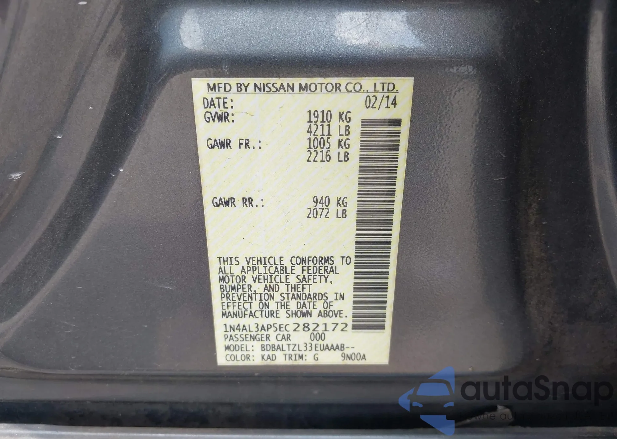 LOT: 43158298 VIN: 1N4AL3AP5EC282172