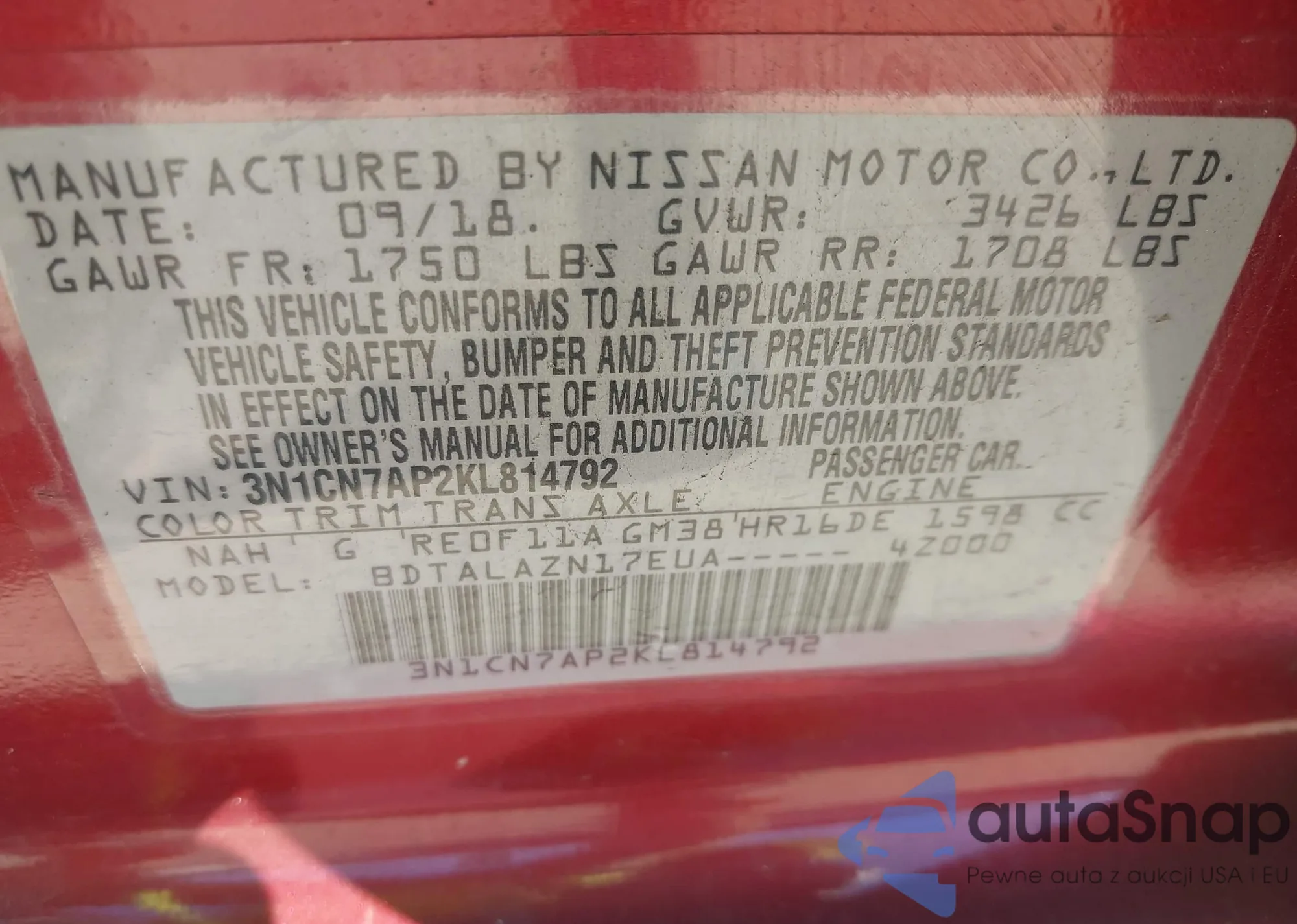 • VIN 3N1CN7AP2KL814792