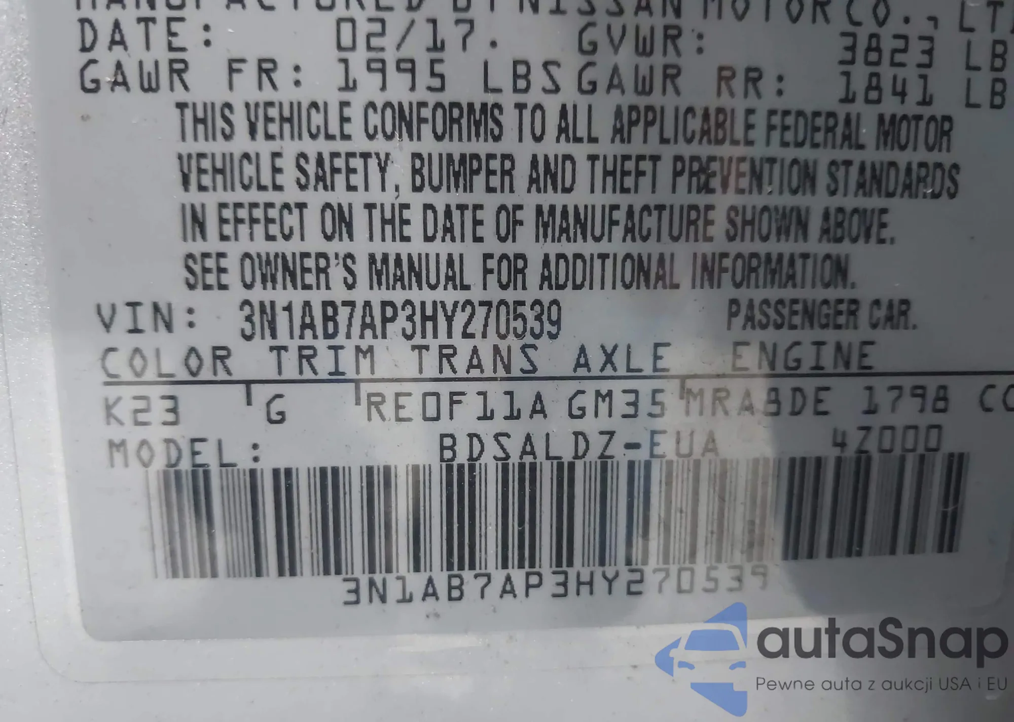 • VIN 3N1AB7AP3HY270539