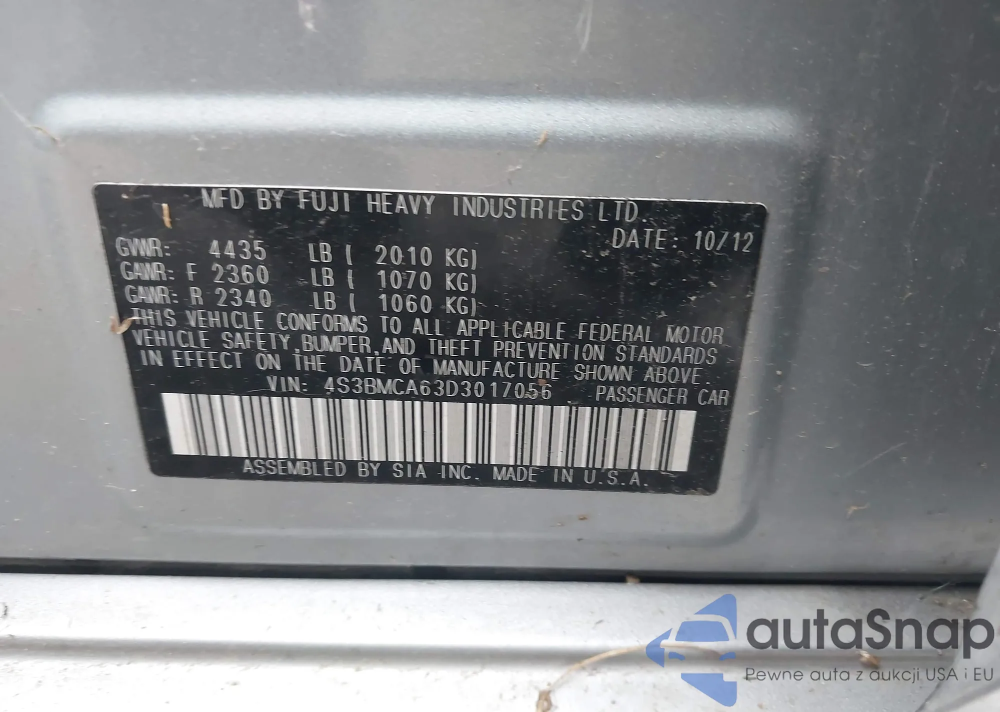 • VIN 4S3BMCA63D3017056