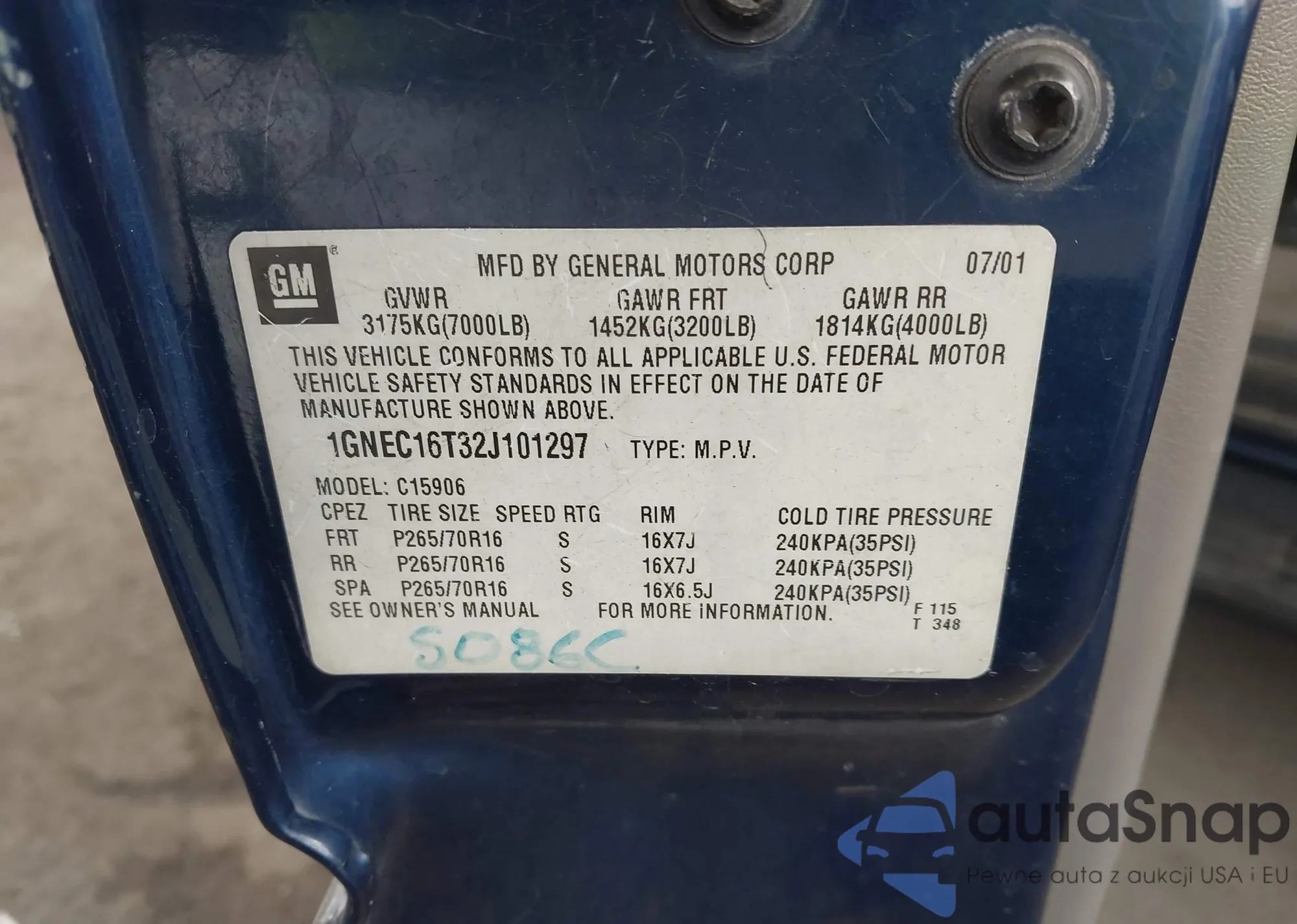 • VIN 2G2FS22K5W2219756