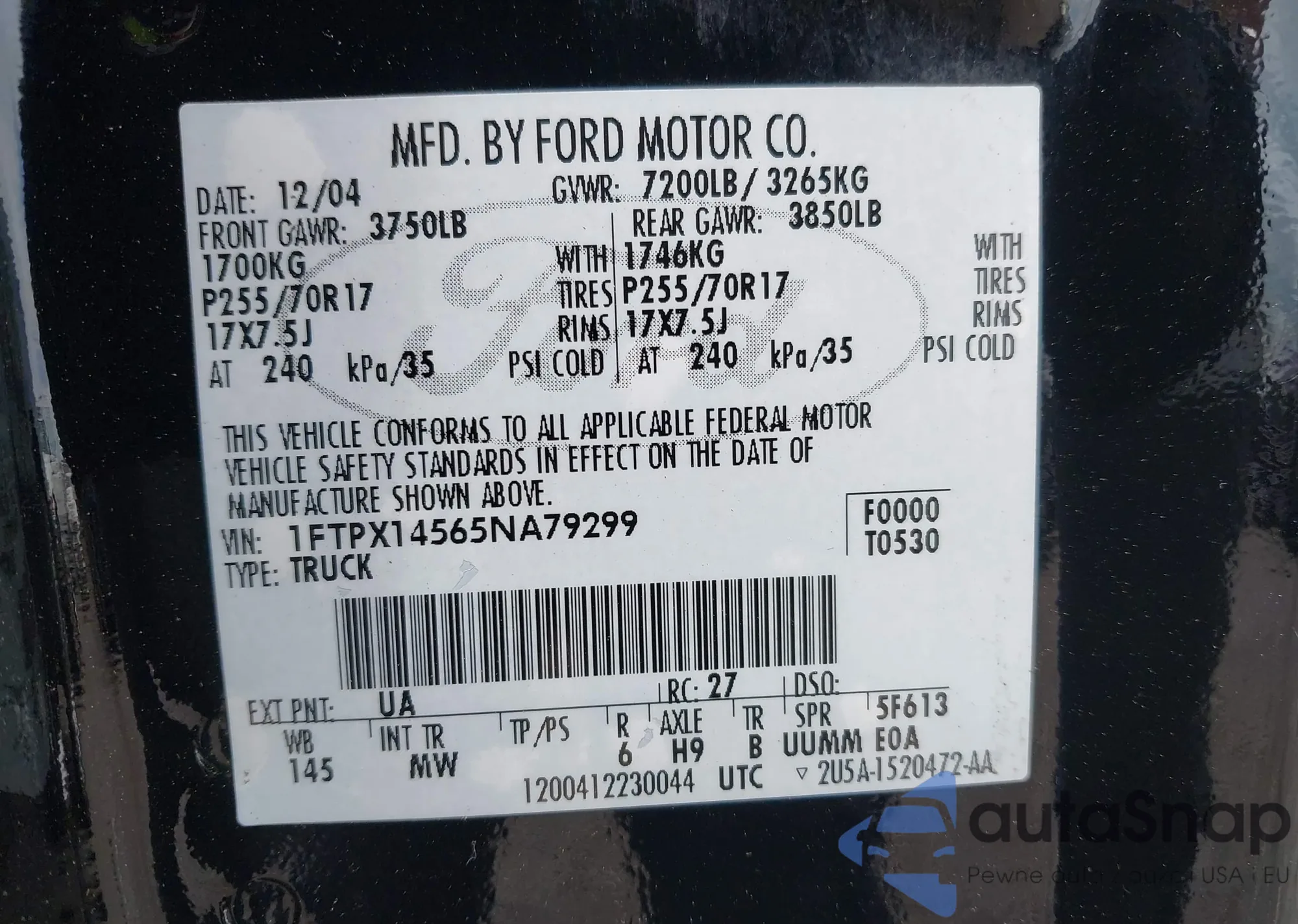 • VIN 1FTPX14565NA79299