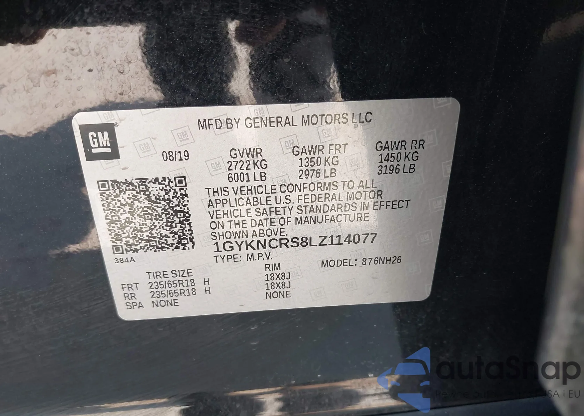 LOT: 43198584 VIN: 1GYKNCRS8LZ114077