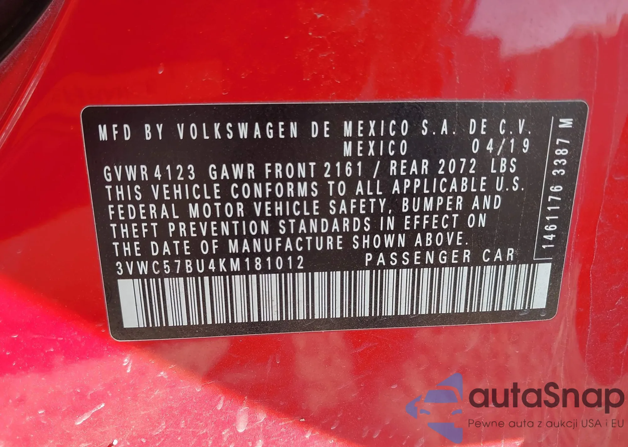 LOT: 43135276 VIN: 3VWJD7AT9JM709256